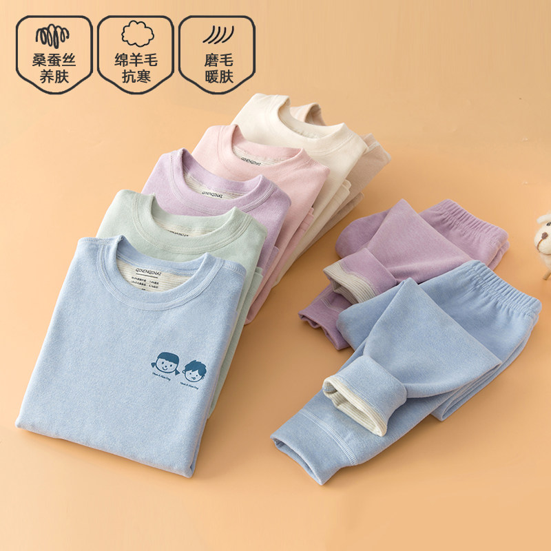 羊毛桑蚕丝儿童秋衣秋裤内衣套装秋冬德绒男女童保暖宝宝加绒加厚
