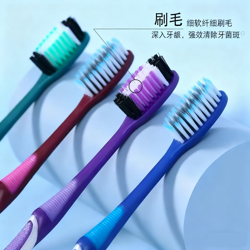 中硬毛牙刷高档独立包装成人家用去牙渍去黄美白清洁抗菌软毛牙刷