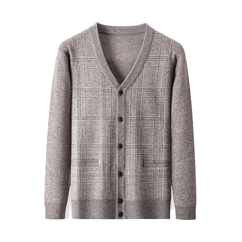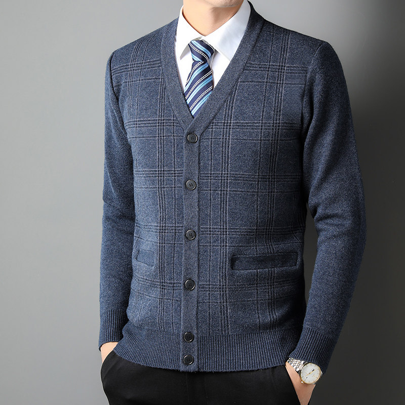 冬季保暖内衣中老年男人加绒加厚针织衫羊羔绒毛衣开衫爸爸装外套