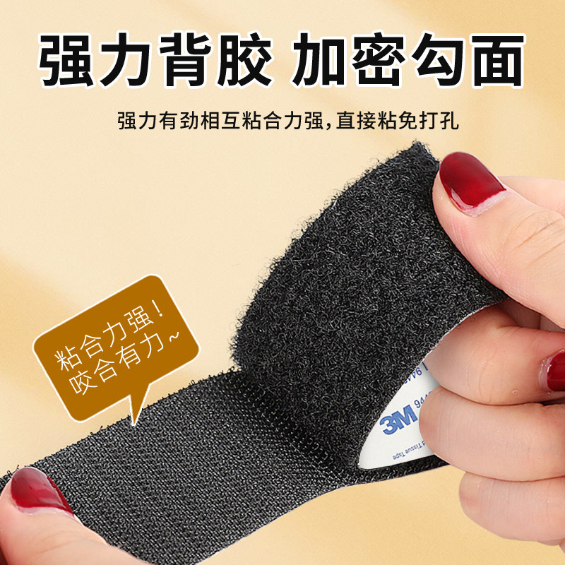 3M强力魔术贴带背胶粘贴固定窗帘床帘纱窗专用子母卡扣免打孔汽车脚垫后备箱垫固定神器高粘度无痕双面胶贴