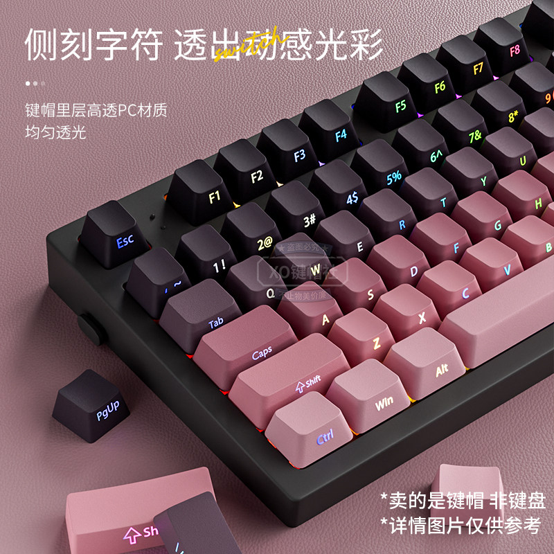 黑莓侧刻原厂键帽PBT渐变透光机械键盘帽68/87/98/108键MK87 K87S
