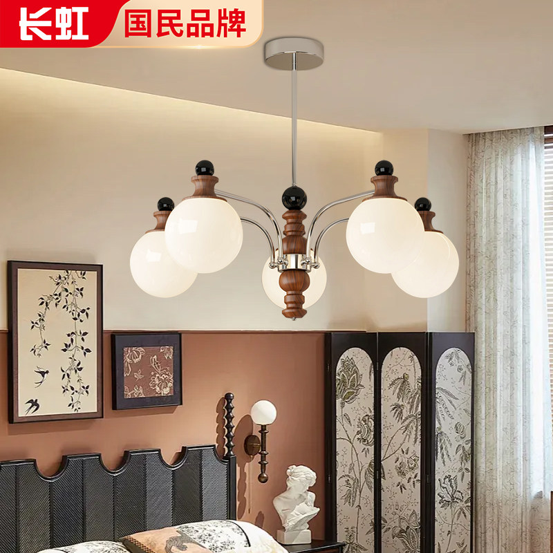 长虹2025年新款中古风客厅吊灯高亮全光谱护眼魔豆餐厅灯中山灯具