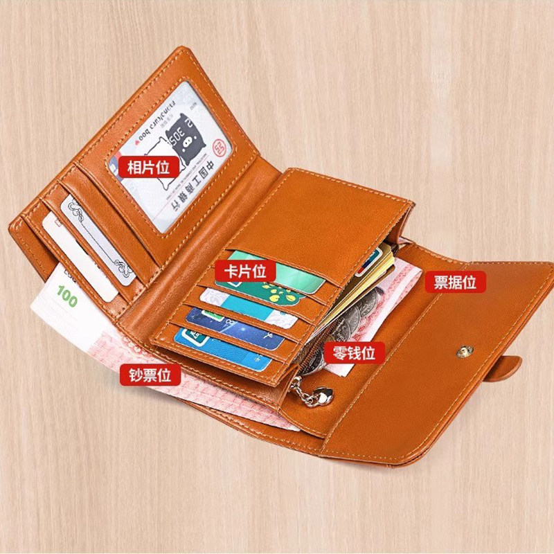 女士钱包短款2025新款真皮皮夹三折时尚潮流折叠简约牛皮女式钱夹