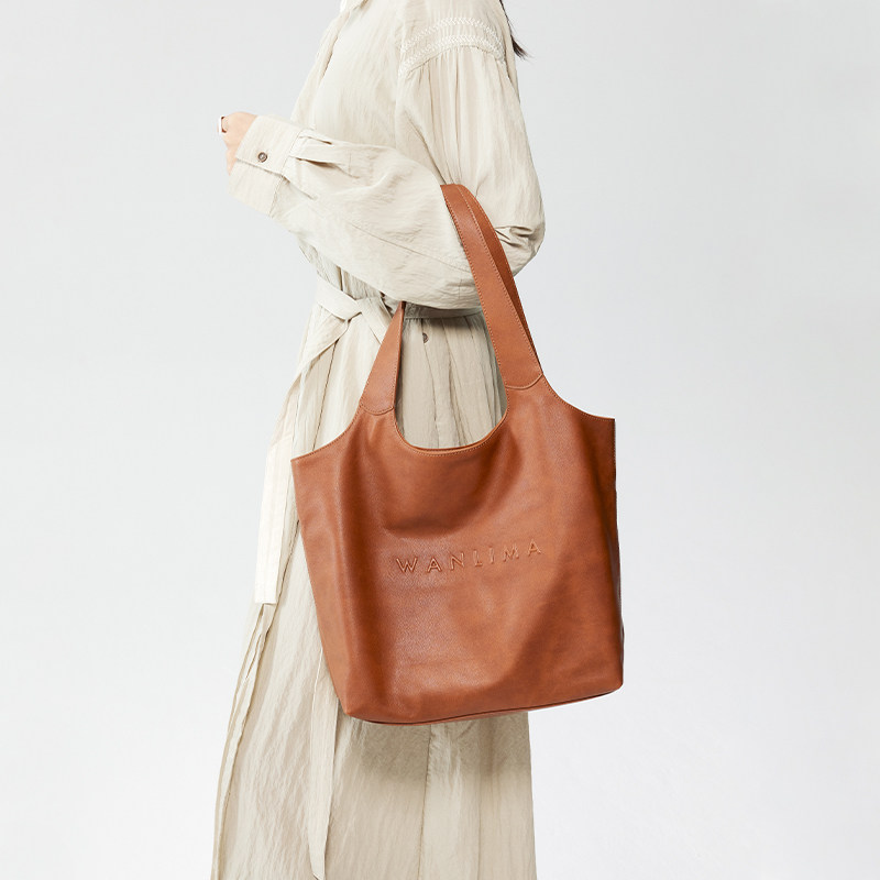 万里马漫迹植鞣牛皮托特包女2025新款复古大容量轻便手提包单肩包