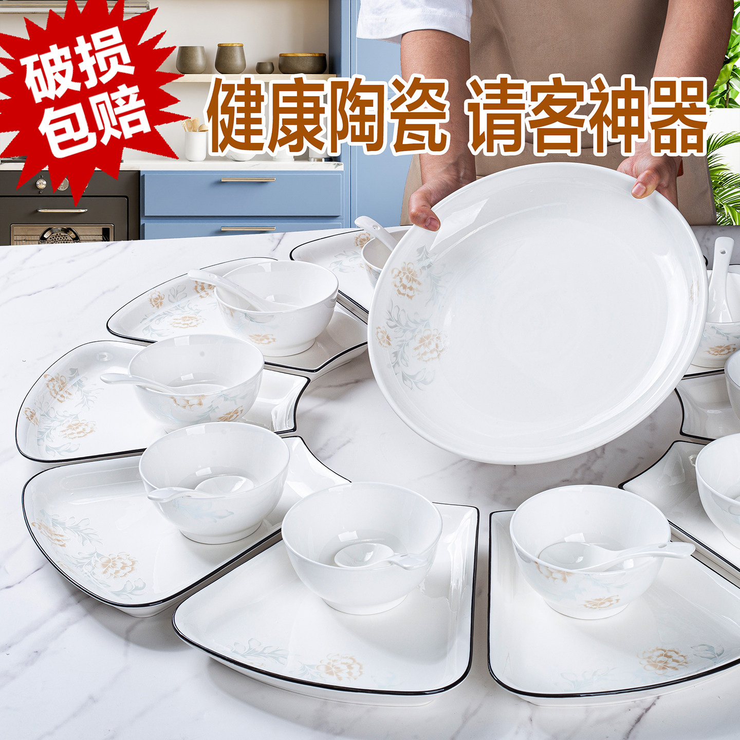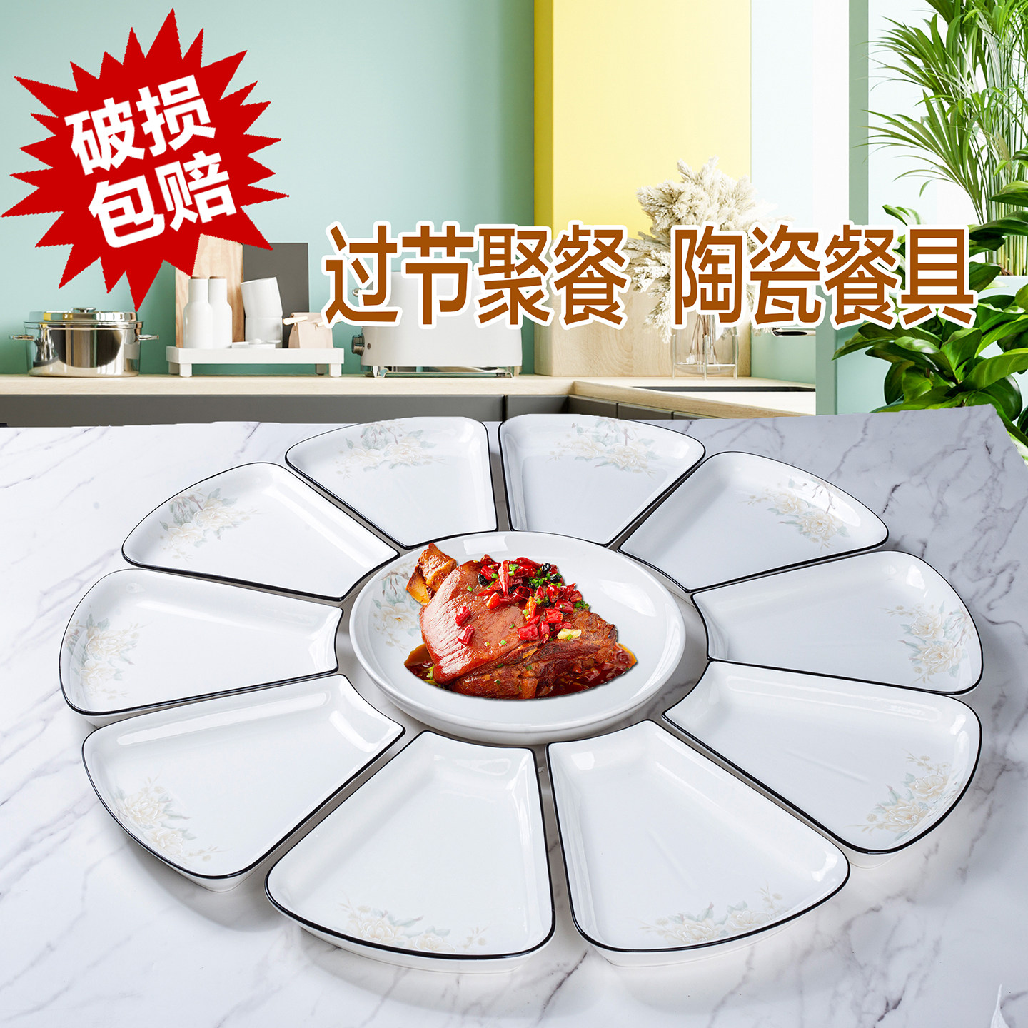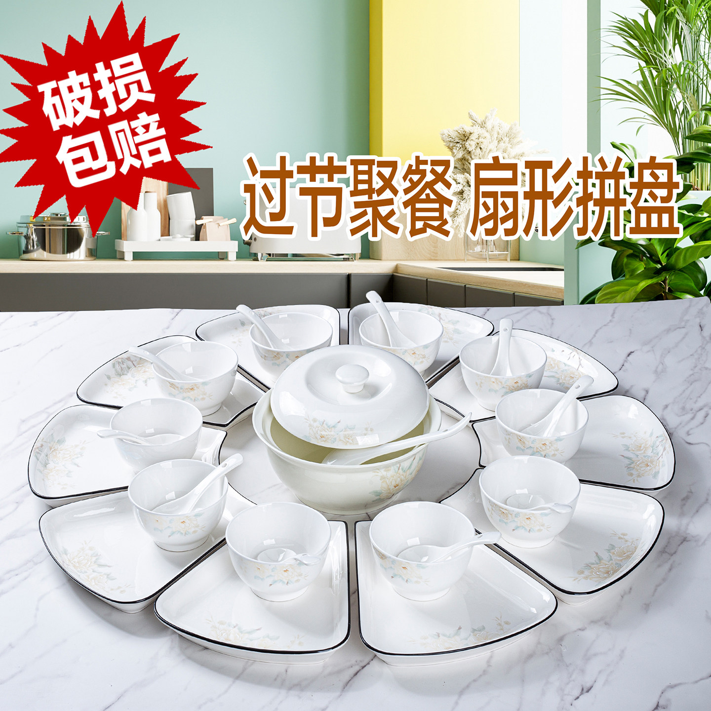 新款陶瓷扇形拼盘聚会团圆乔迁送礼套装餐具菜盘家用创意盘子组合
