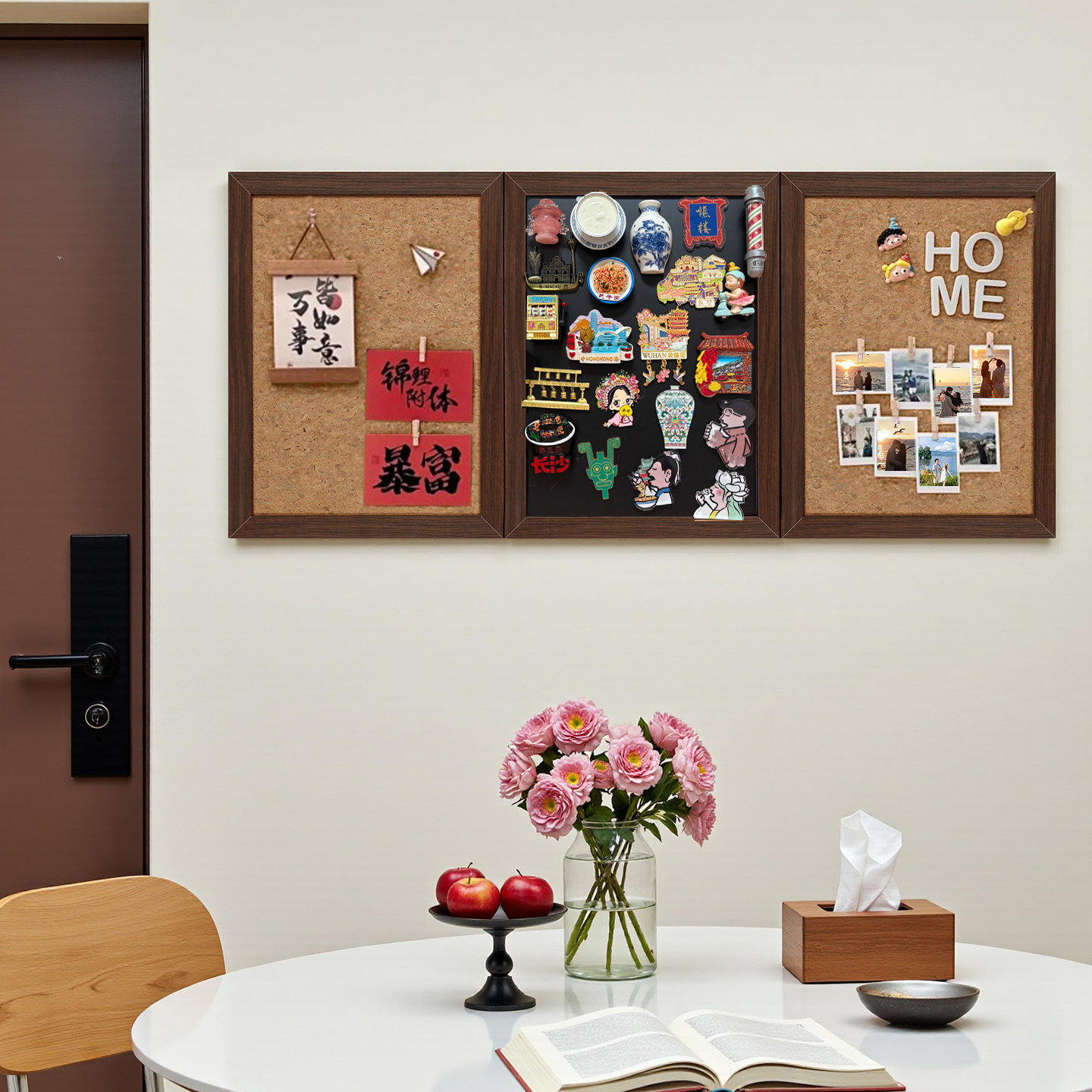 brandland黑板软木板创意组合照片展示墙客厅玄关diy背景墙磁吸冰箱贴收纳展示板黑框高级感胡桃色走廊装饰板
