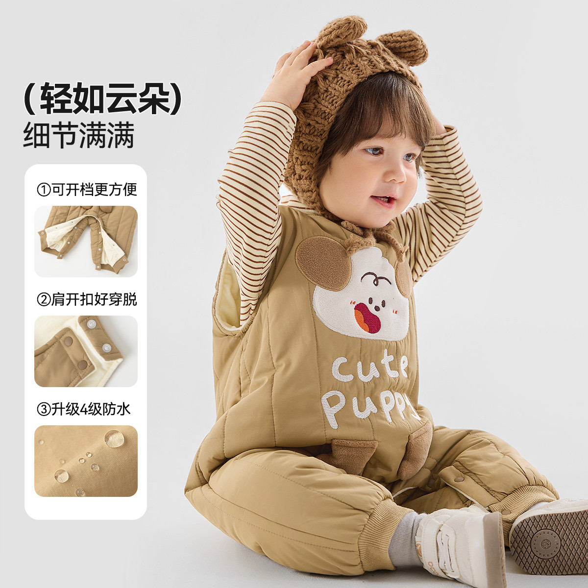 嘟嘟家宝宝连体衣秋冬加绒婴儿开档背带裤冬款加厚新生儿哈服冬装