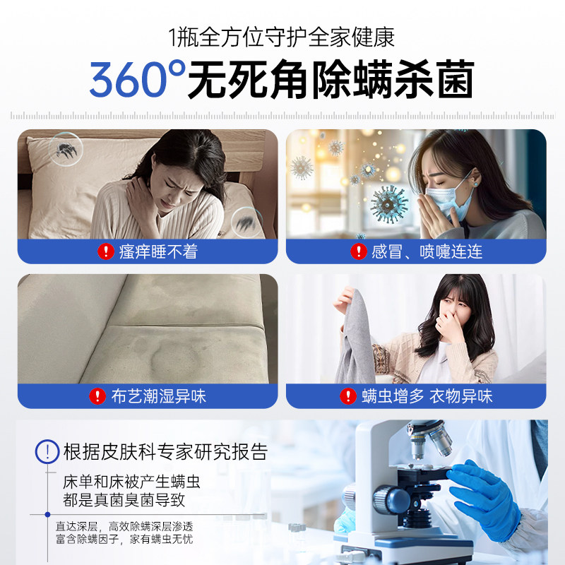 除螨喷雾杀菌剂去螨虫神器消毒床上可家用学生宿舍专用免洗衣物