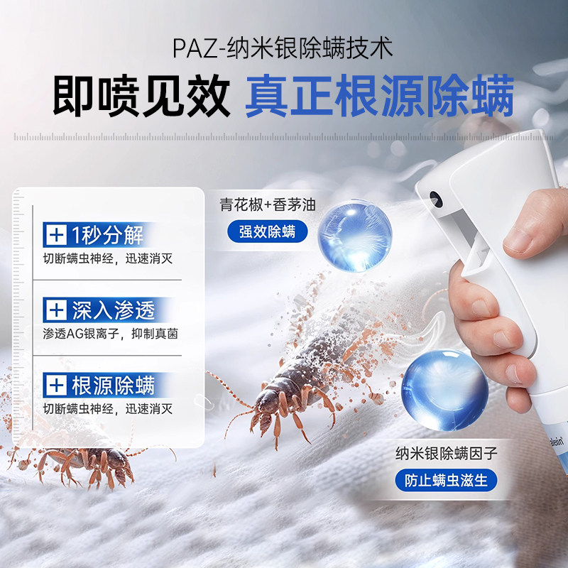 贝德美除菌除螨喷雾去螨虫床上沙发可用免洗家用除螨神器婴适用