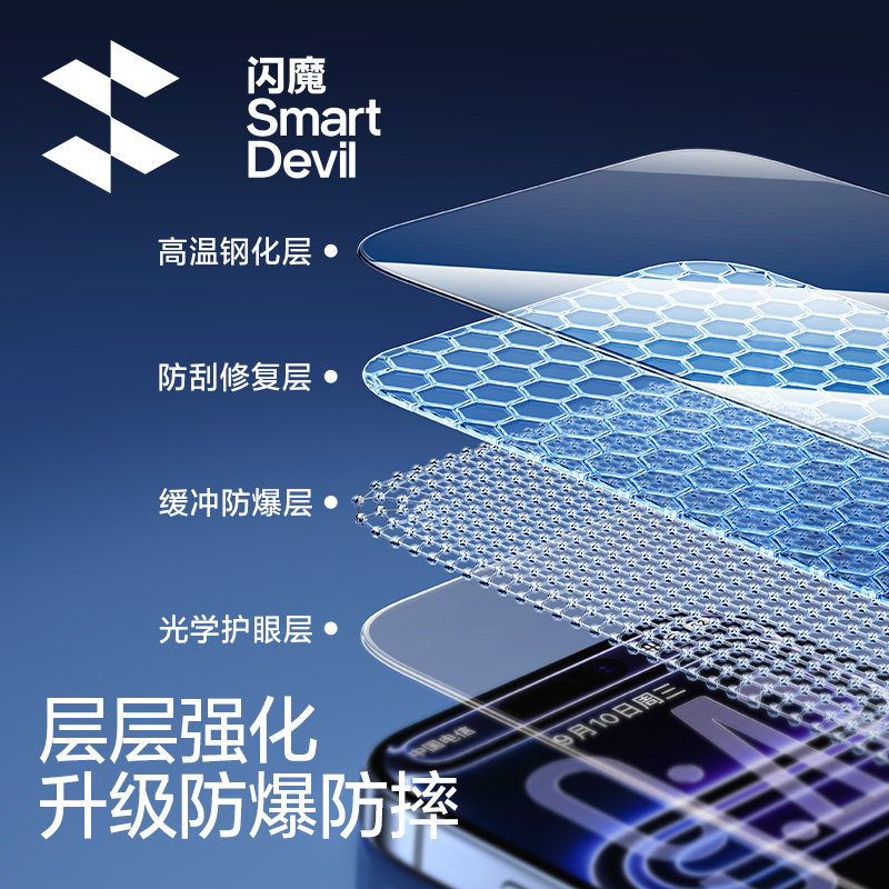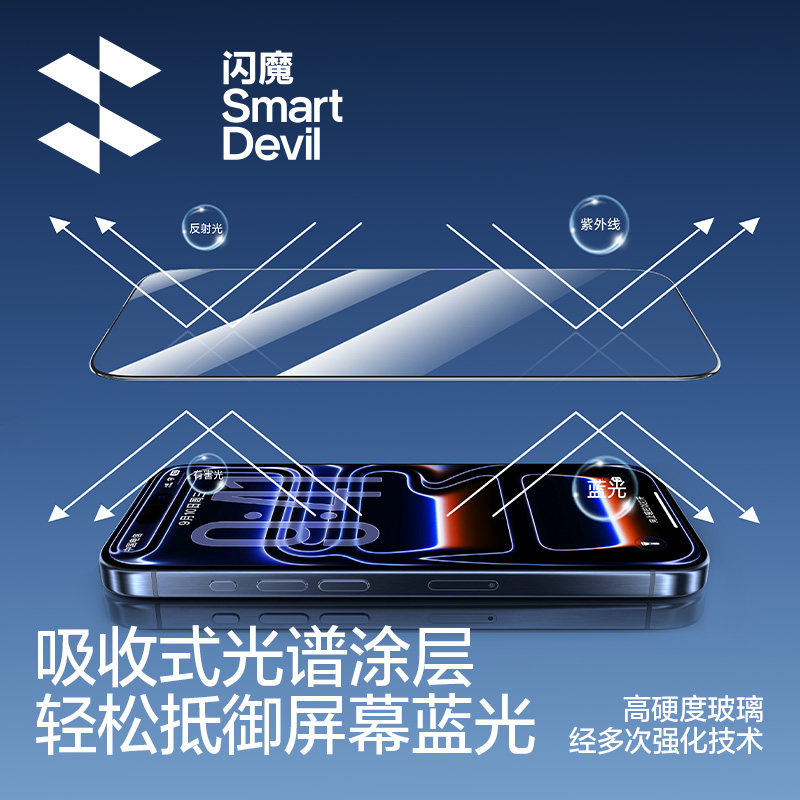 闪魔 适用iPhone17ProMax钢化膜苹果13手机膜14/15护眼16Pro Max屏幕12pro抗防蓝光XS/XR全屏新款11贴膜plus