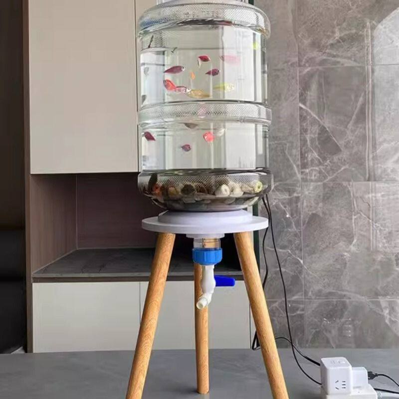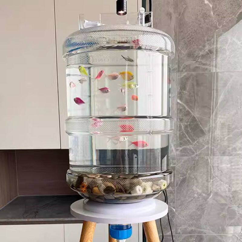 懒人养鱼带排水阀上过滤18.9升透明矿泉水桶养鱼创意支架改装鱼缸