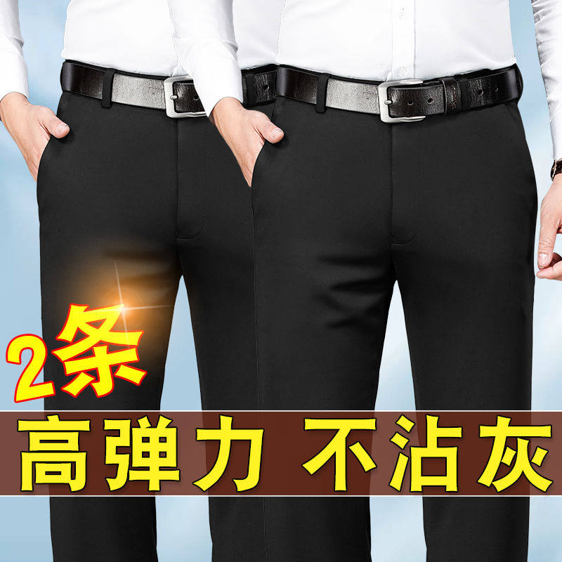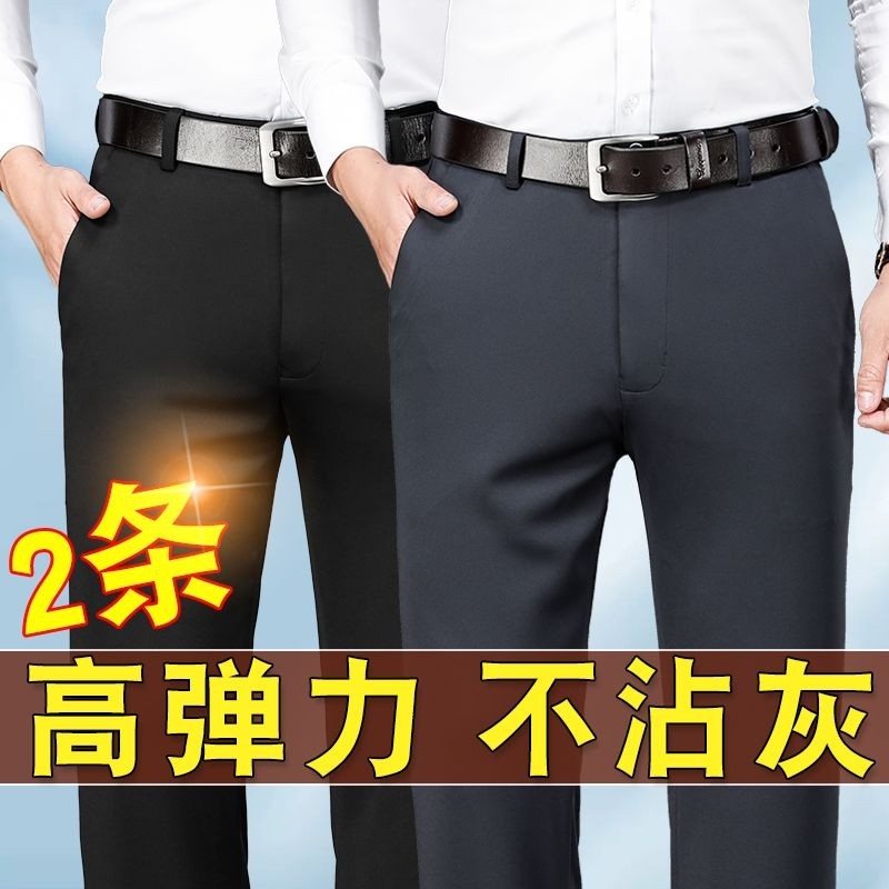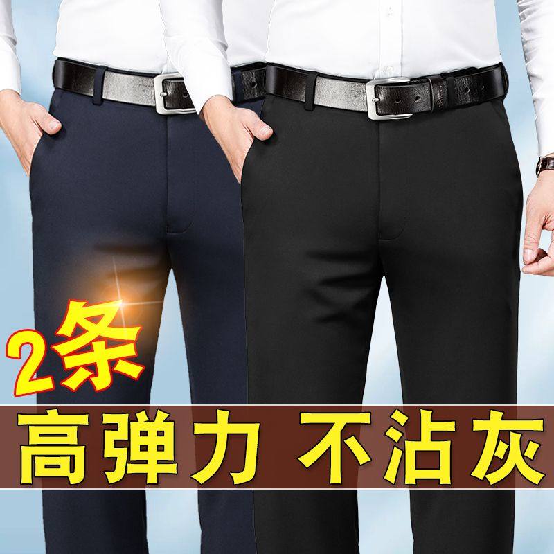 男士秋冬加厚款高档西裤宽松大码直筒高弹力抗皱中老年休闲裤弹性