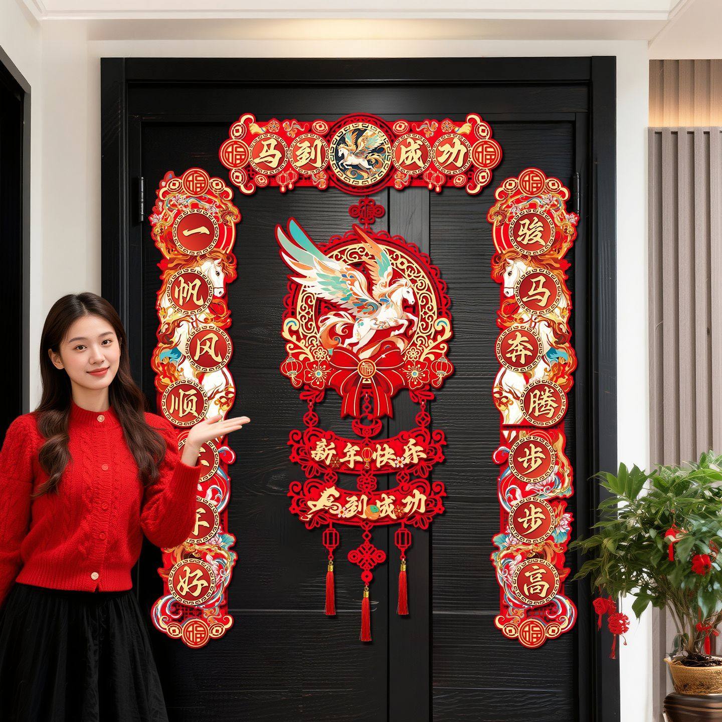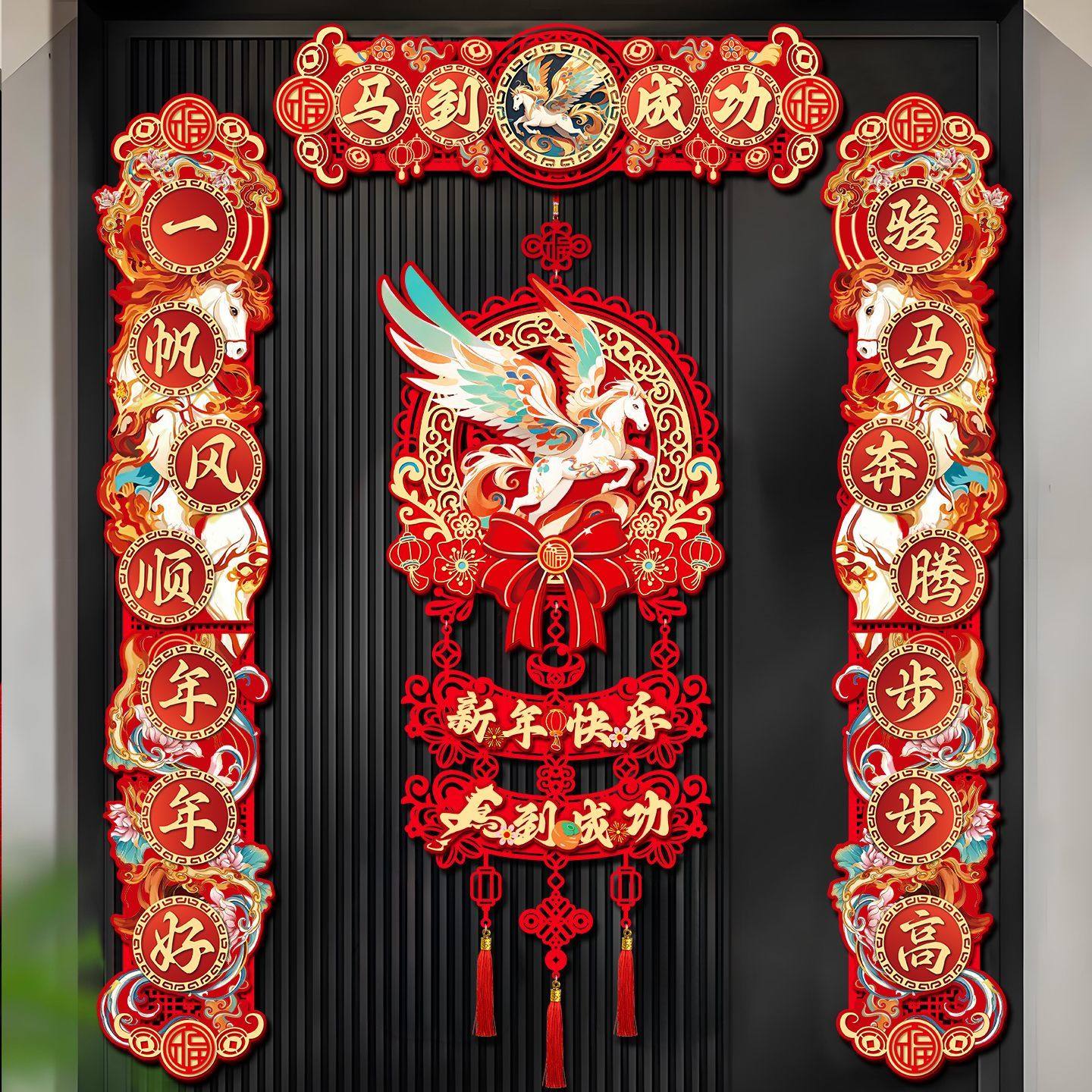 春节新款对联2026马年新款家用过年大门布置新年门贴装饰磁吸春联