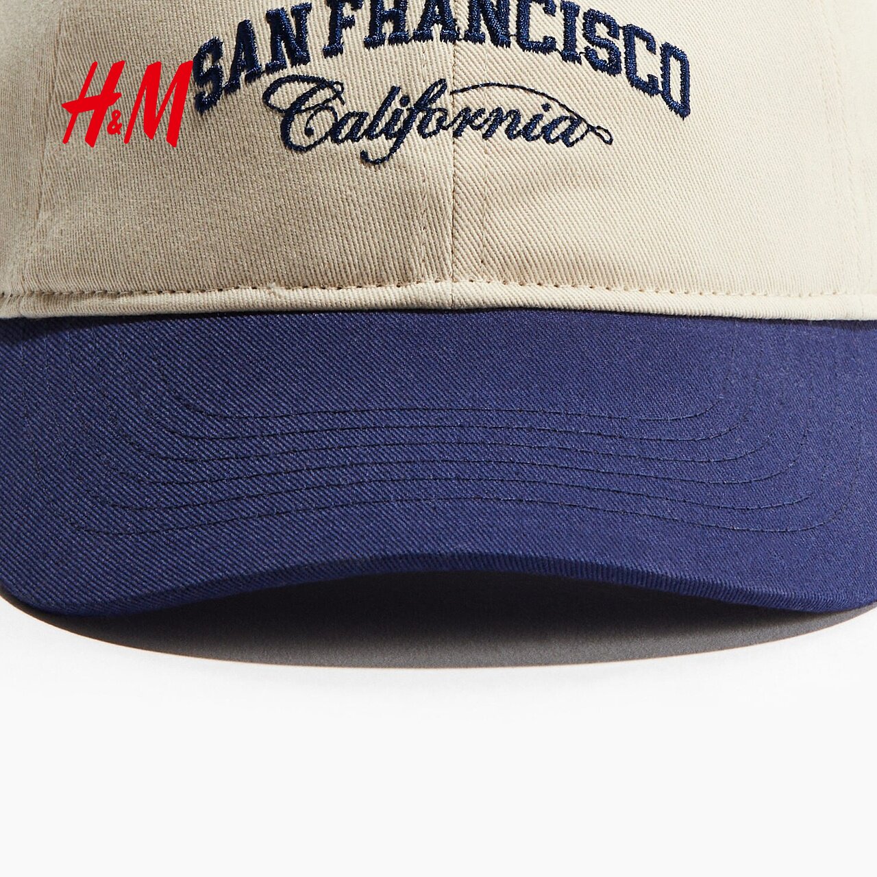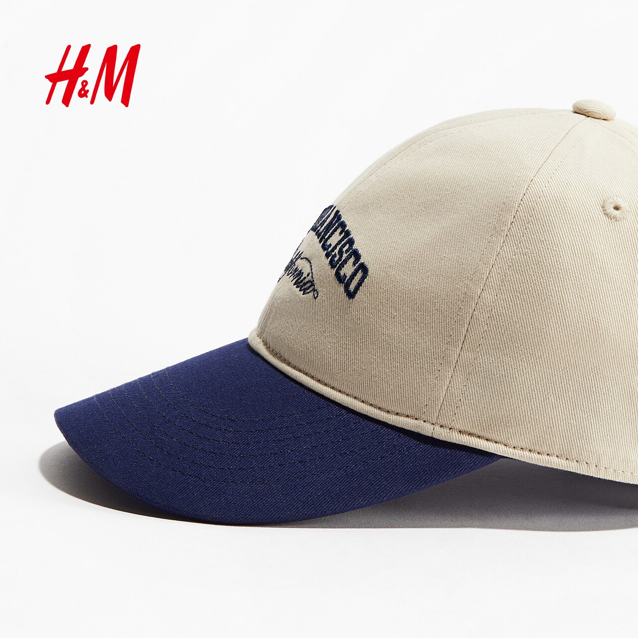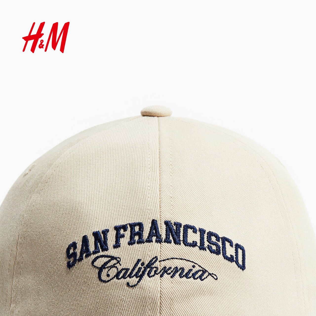 HM女士帽子2025春季新款刺绣图案斜纹布鸭舌帽1232067