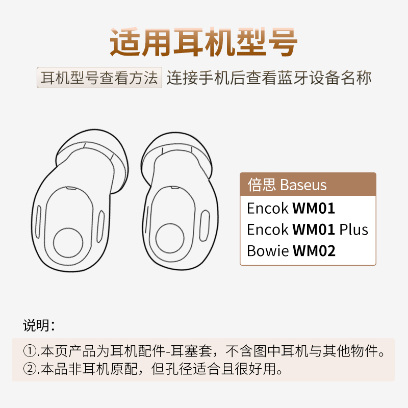 品吉高耳塞套适用倍思Baseus Encok WM01 Plus耳机套Bowie WM02硅胶套EncokWM01耳套BowieWM02耳帽WM01-P配件