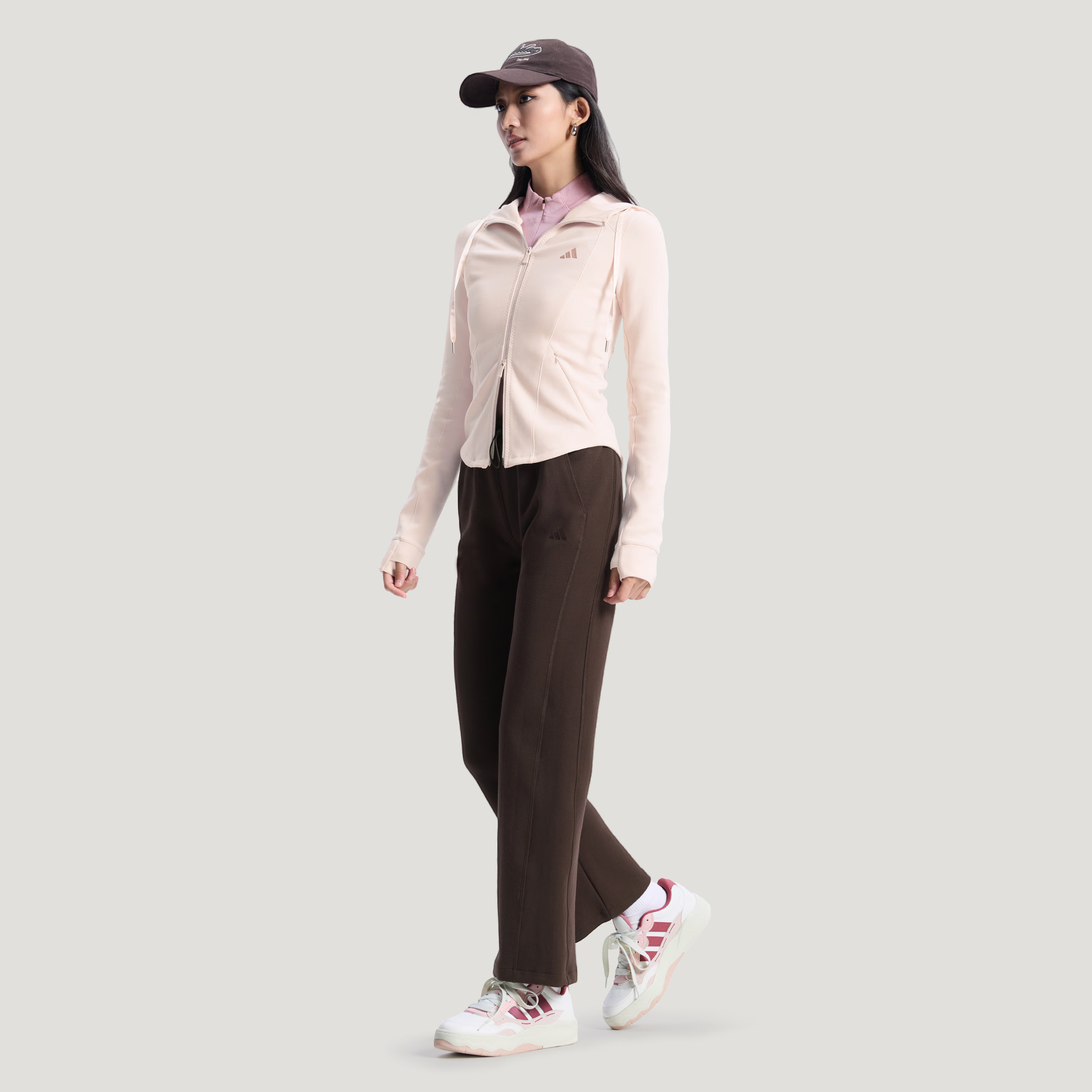 adidas阿迪达斯健身连帽外套2026春女针织休闲运动粉色夹克KH2701