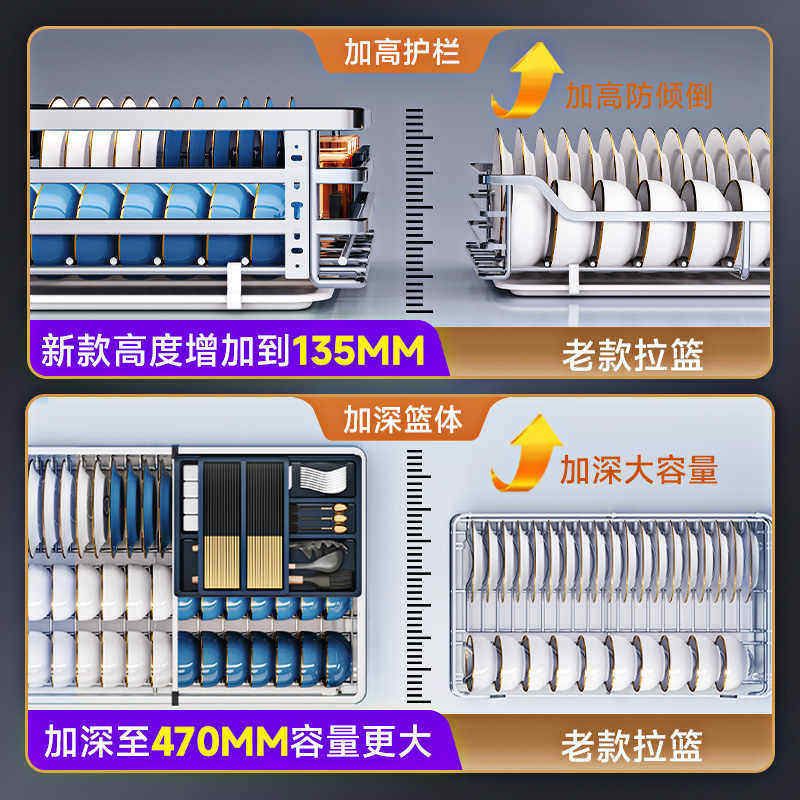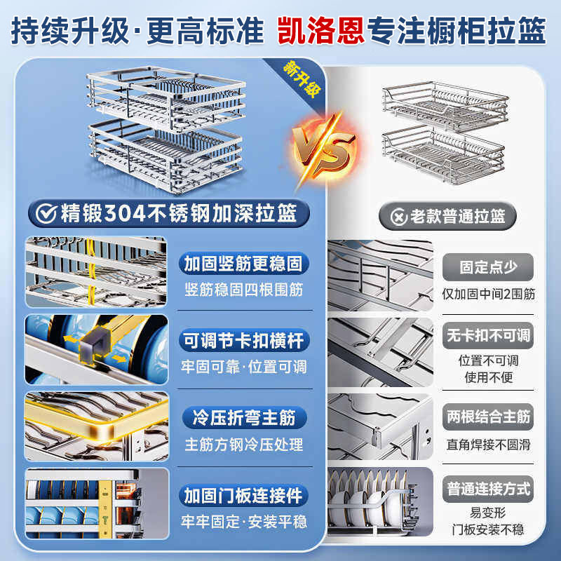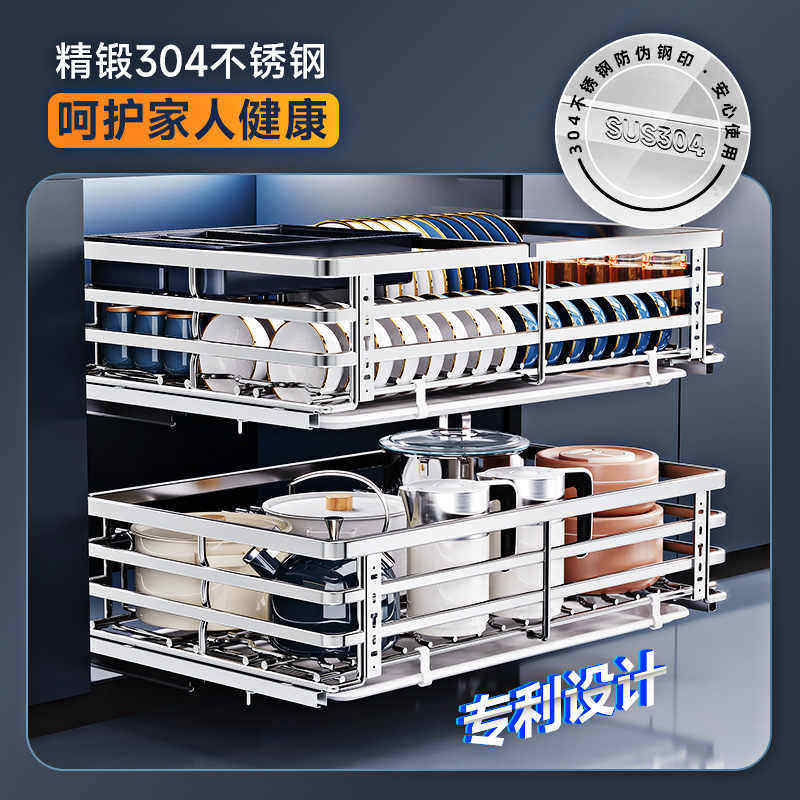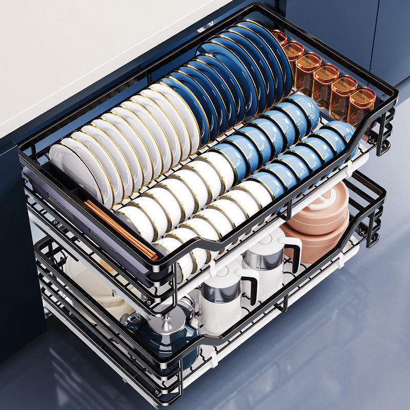 凯洛恩拉篮厨房橱柜304不锈钢双层抽屉式碗架碗碟篮碗柜厨柜碗篮