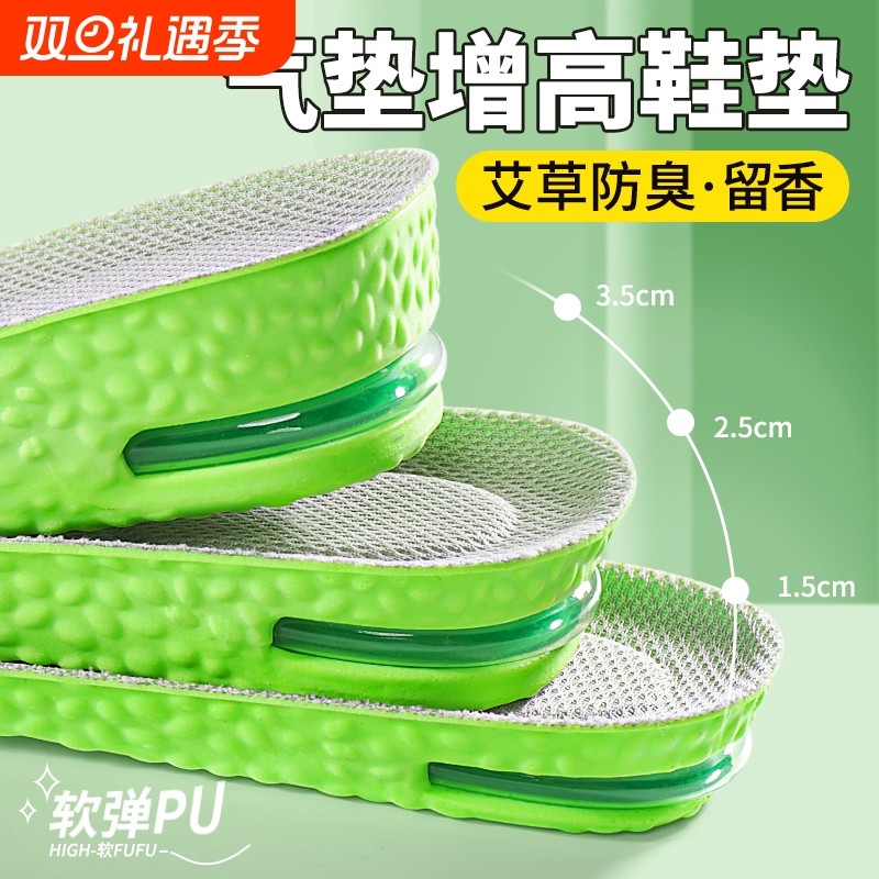 气垫增高鞋垫男士运动减震不累脚隐形内增高女不塌陷吸汗防臭艾草