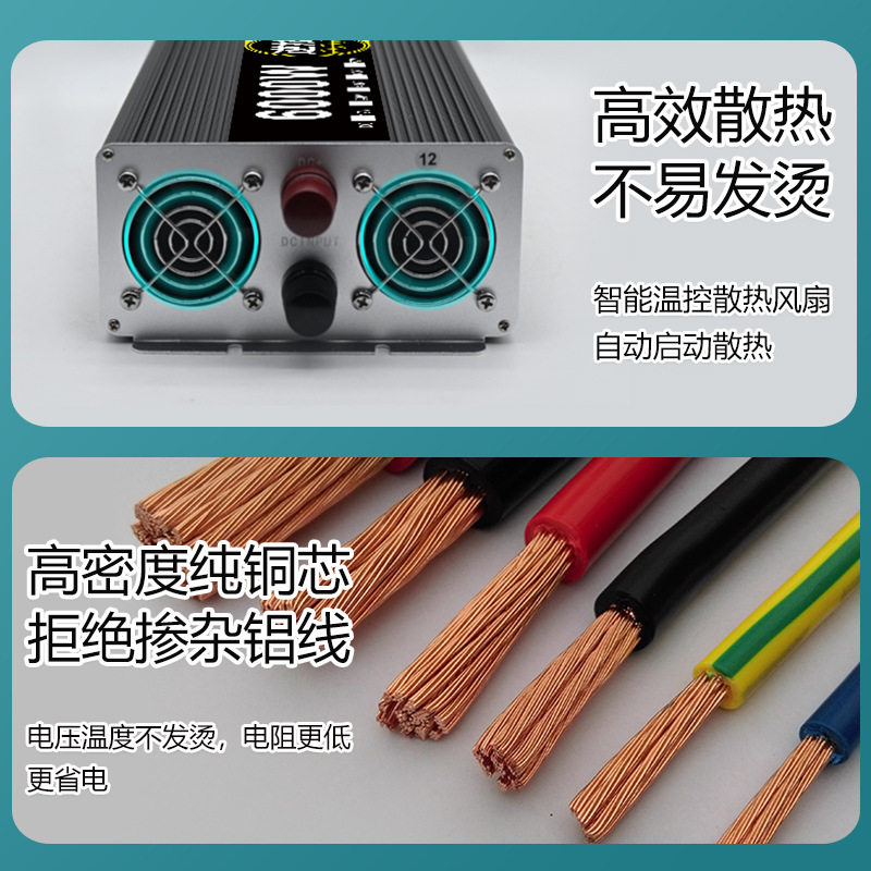 车载逆变器12V24V48V60V72转220V大功率5000W6000W家用电瓶转换器