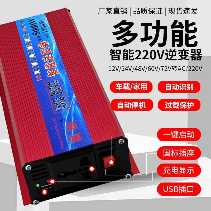 电动车5000W逆变器12V24V48v60v72v转交流220V家用汽车货车转换器