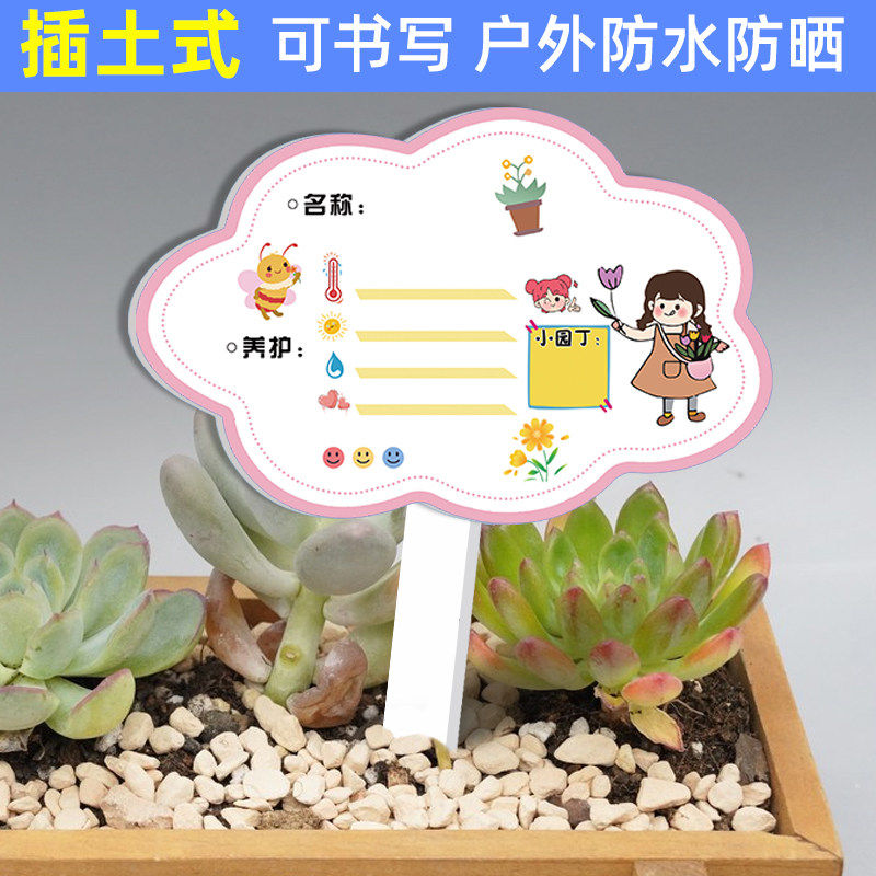 卡通植物标签幼儿园花卉盆栽绿植可定制DIY养护卡片标识牌花盆栽绿植多肉植物介绍牌子爱护绿植标语养护卡片