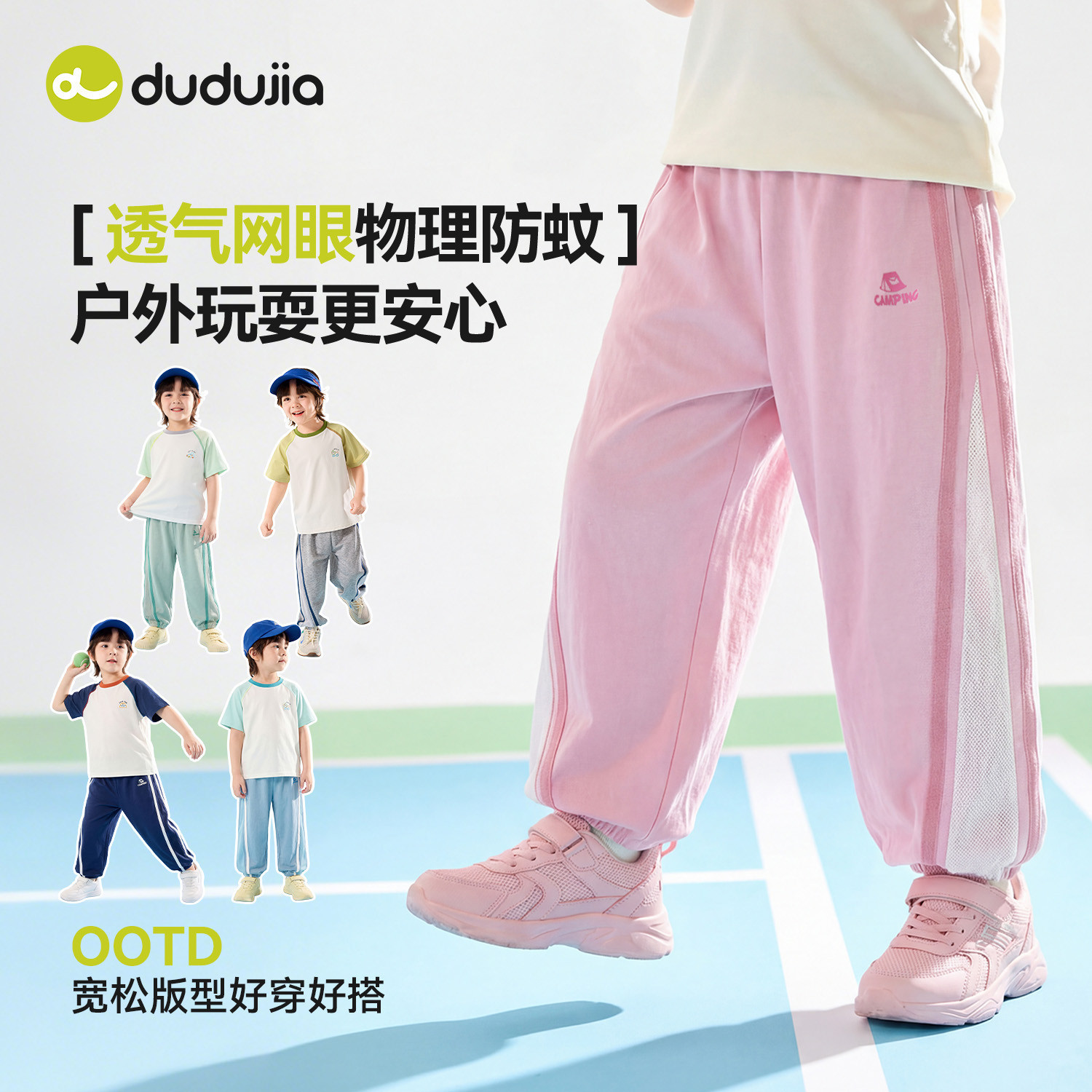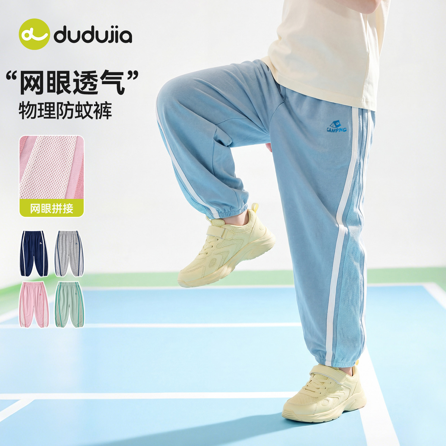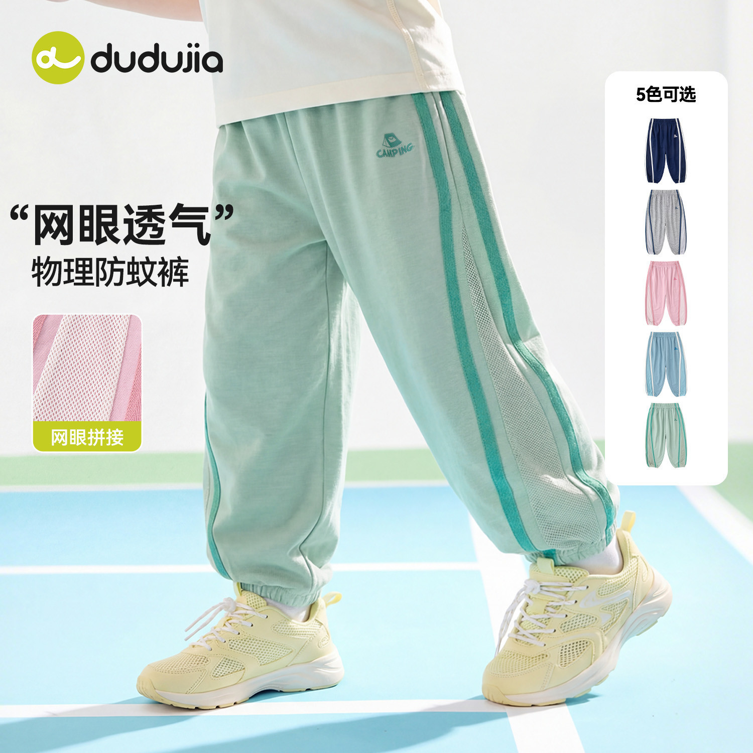 嘟嘟家儿童裤子男童夏季物理防蚊裤女童网眼透气长裤宝宝童装衣服