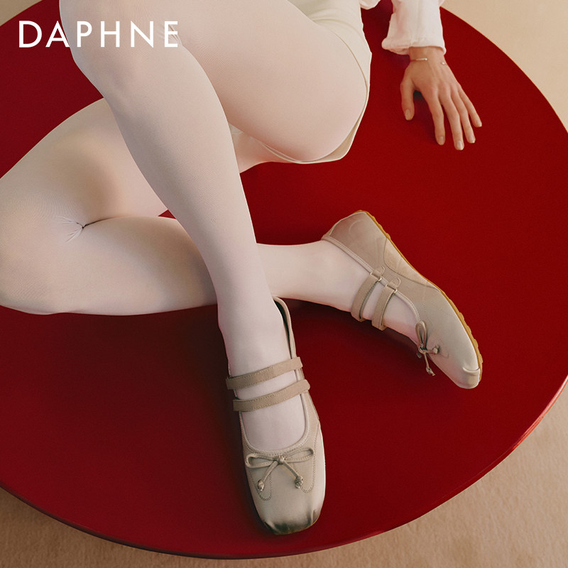 宋茜同款达芙妮云软芭蕾舞鞋女2026新款春季蝴蝶结玛丽珍真皮单鞋