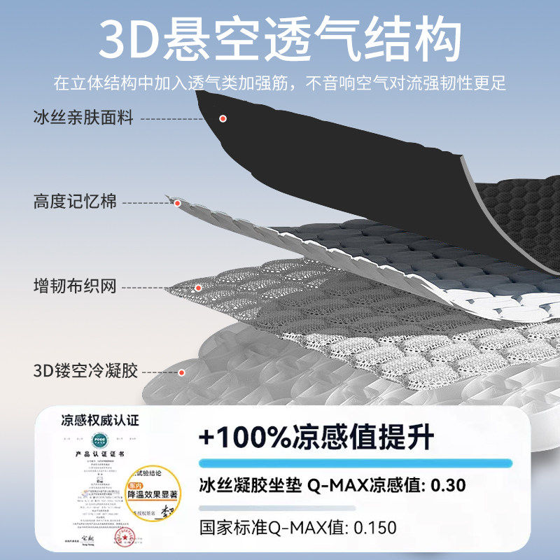 汽车坐垫夏季凉垫凝胶冰垫单片四季通用座椅通风透气夏天冰丝座垫