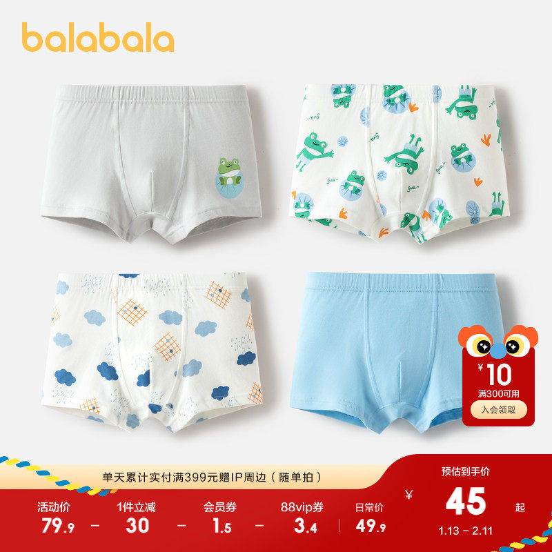 巴拉巴拉男童内裤棉平角儿童四角短裤抑菌裆亲肤宝宝不夹PP四条装
