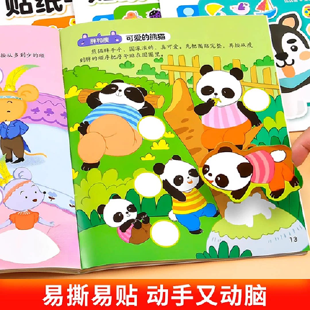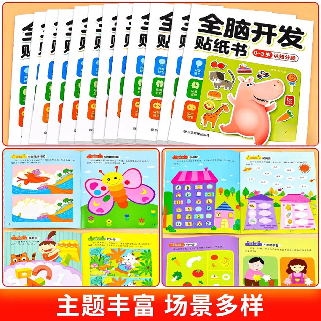 儿童全脑开发专注力训练贴纸书贴贴画幼儿宝宝早教益智玩具游戏书动脑逻辑思维0-2-3-4-5到6岁启蒙认知早教书绘本粘贴画智力左右脑