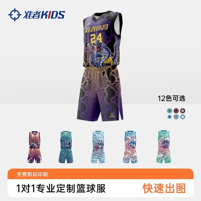 准者童装十二生肖儿童篮球服定制国潮10A抗菌球衣套装比赛运动服