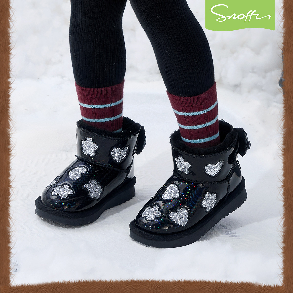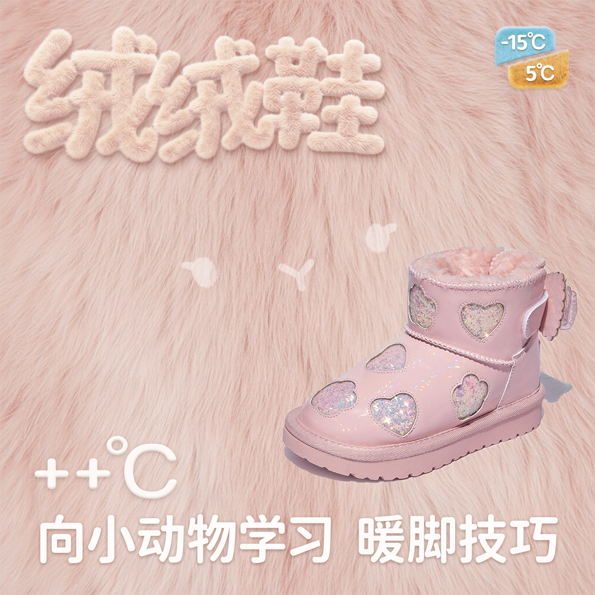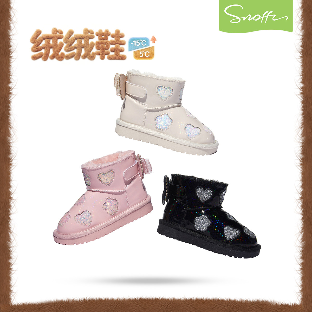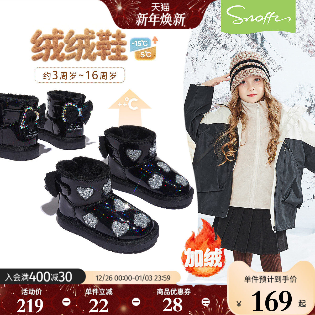 斯纳菲女童雪地靴2025冬季新款加绒靴子防溅水宝宝棉靴短靴大棉鞋