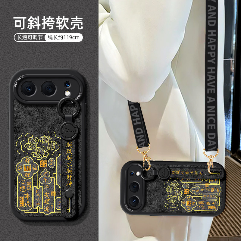 国潮适用于荣耀500手机壳高级感女款福气锦鲤国风honor保护套硅胶国潮支架背带500Pro全包边过年款挂绳防摔壳