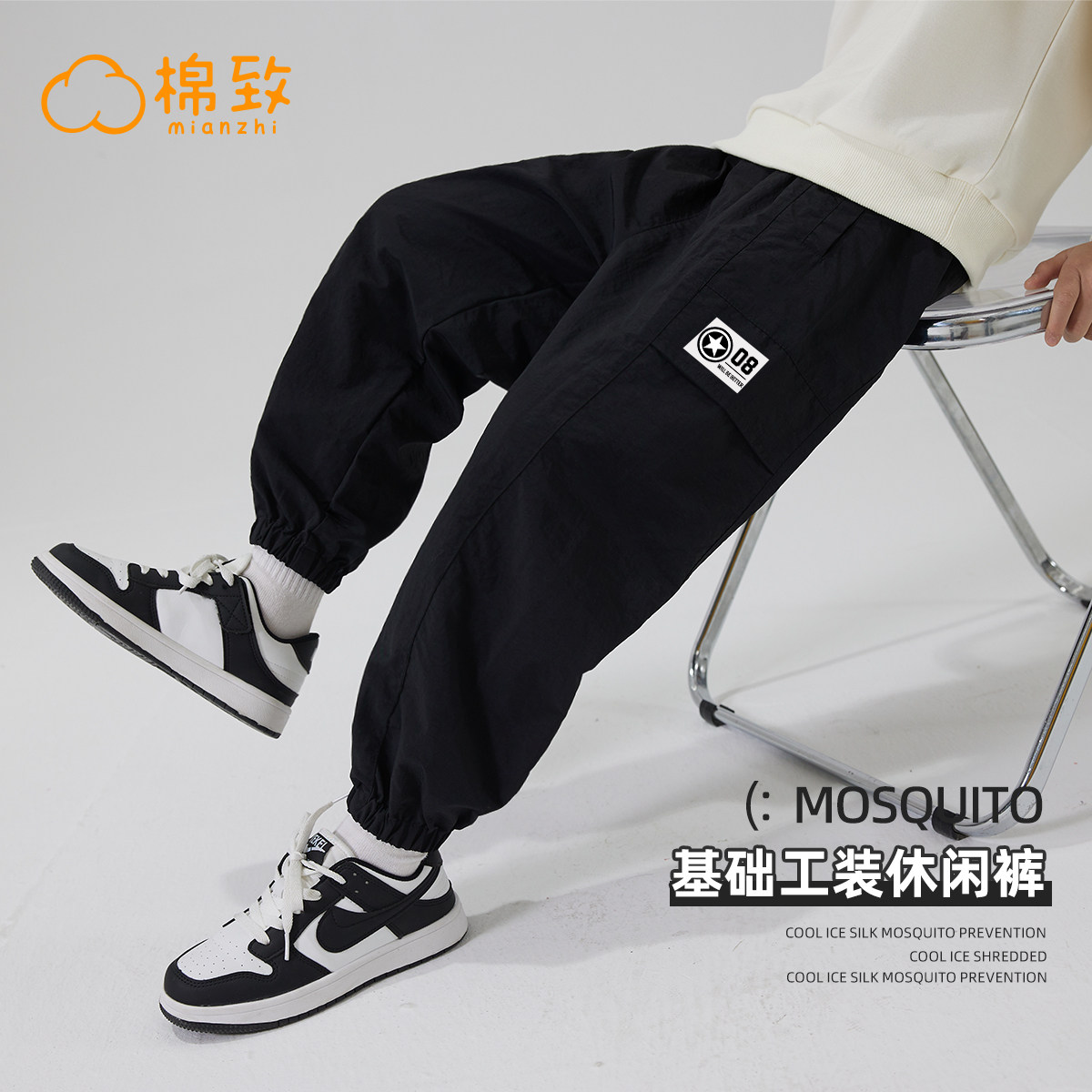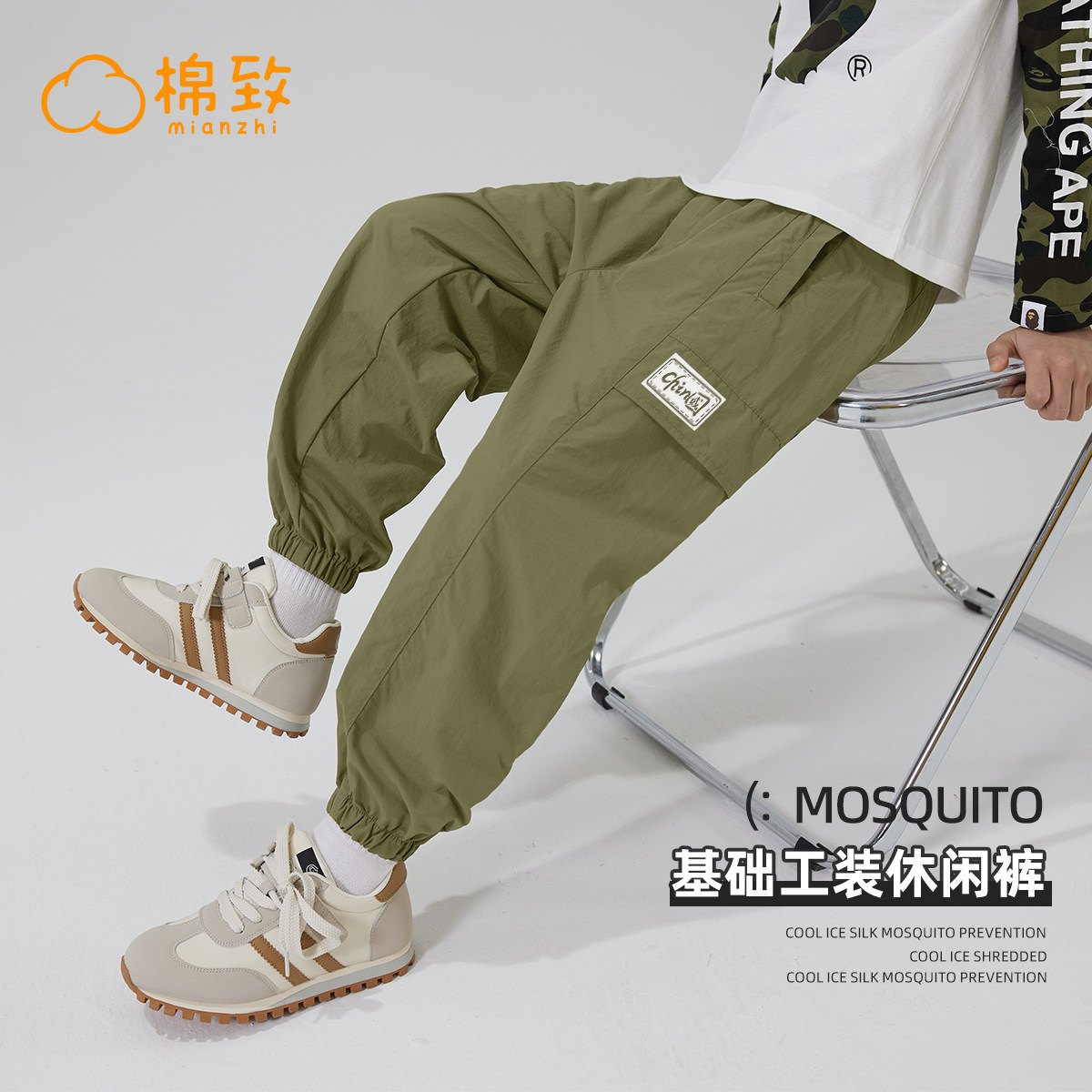棉致男童裤子春秋2025新款春夏男孩防蚊裤夏季薄款儿童工装裤夏天