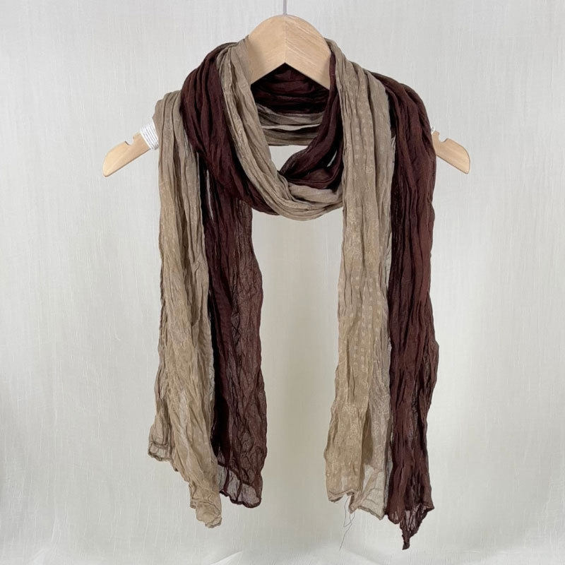 县城文学!棕色复古文艺风棉麻围巾女春秋渐变皱丝巾森女百搭配饰