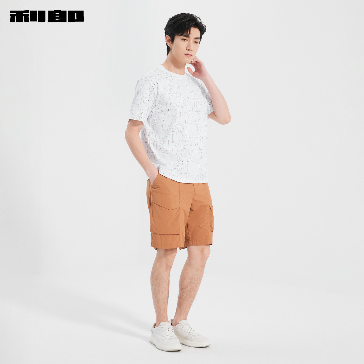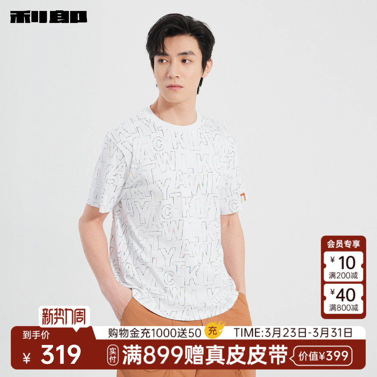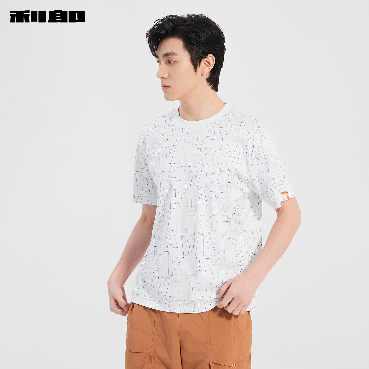 【纯棉】利郎官方 宽松短袖T恤男士圆领字母印花夏季新款男装上衣