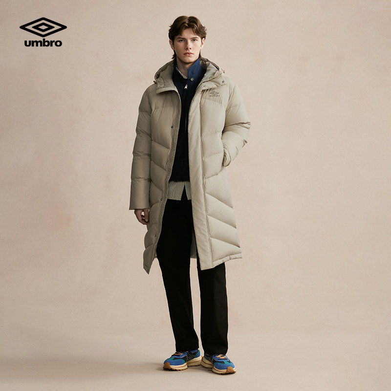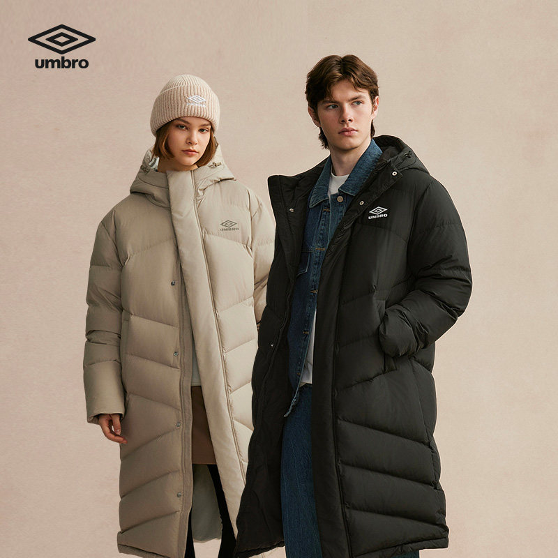 umbro茵宝官方运动足球鸭绒连帽中长款户外男女款冬季保暖羽绒服