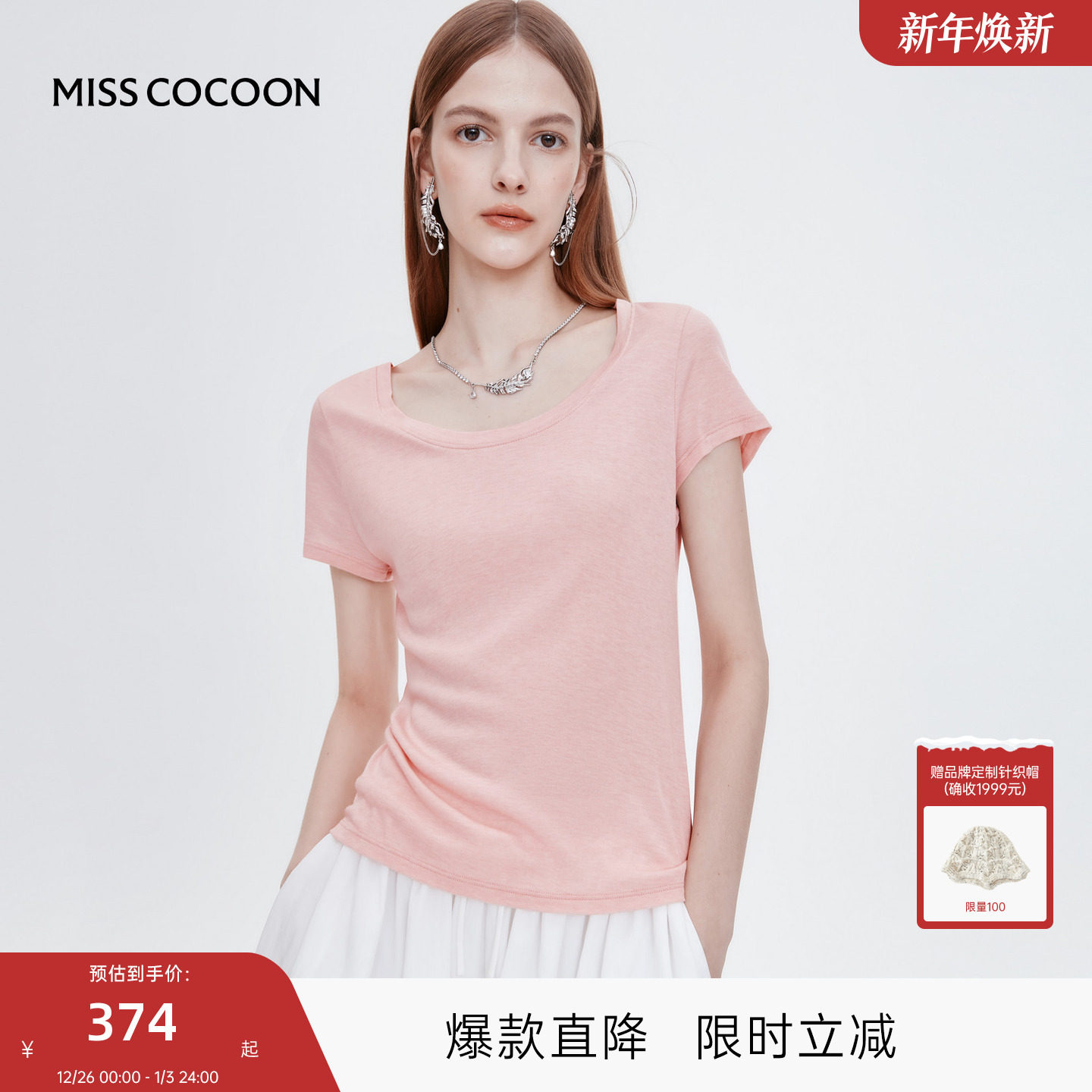 MISS COCOON可可尼莱赛尔正肩T恤上衣2025夏季新款黑色修身短袖女