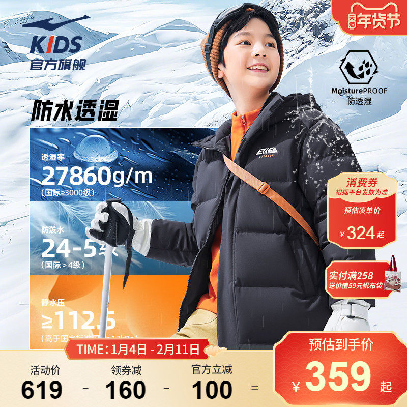 鸿星尔克童装儿童羽绒服冬季中长款加厚男童三防保暖大童冬装外套