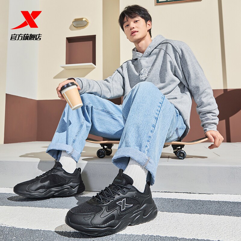 王鹤棣同款丨特步巴斯克2休闲鞋女复古老爹鞋增高运动鞋男鞋棉鞋