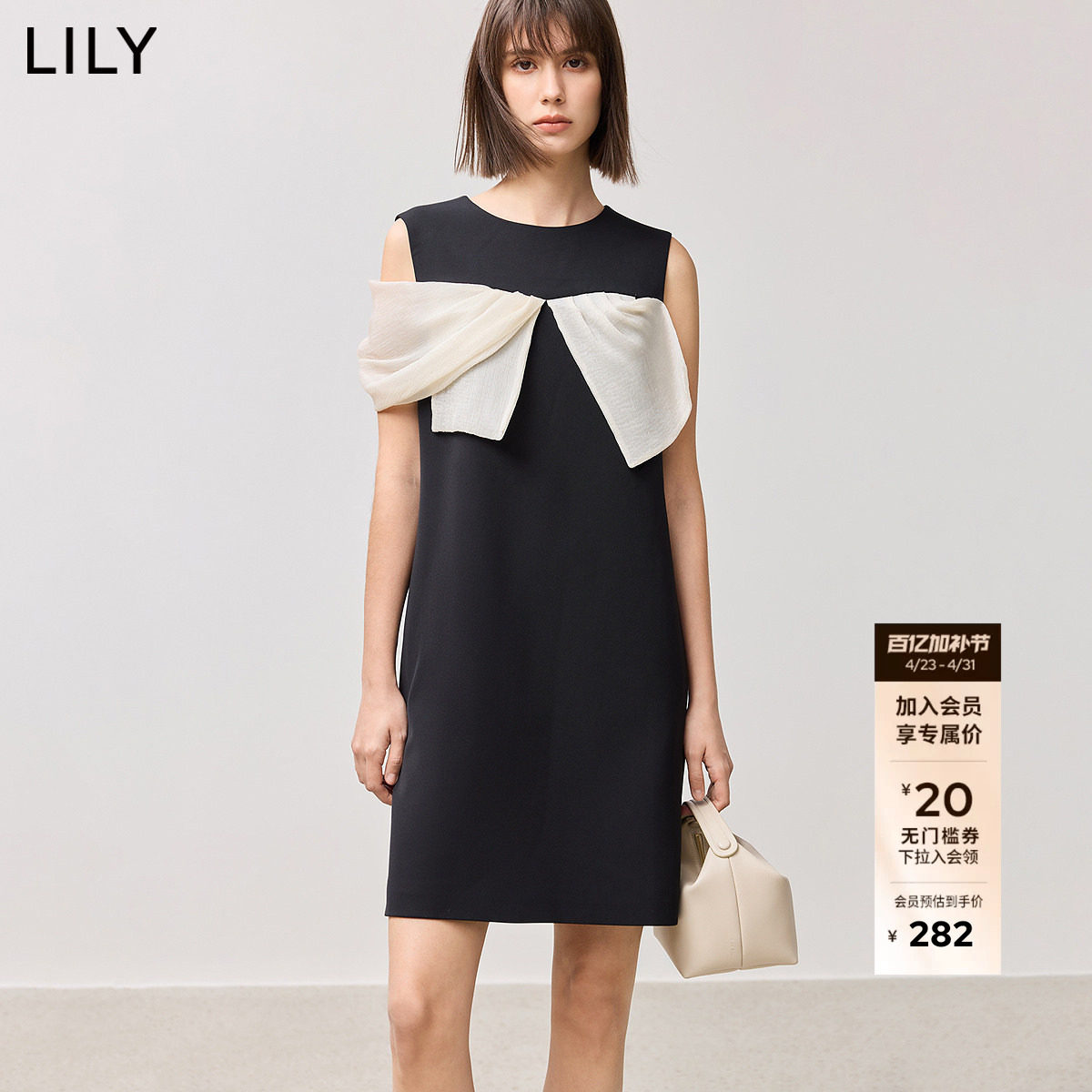 【LILY时光小黑裙】商场同款2025新款女装撞色无袖直筒裙连衣裙