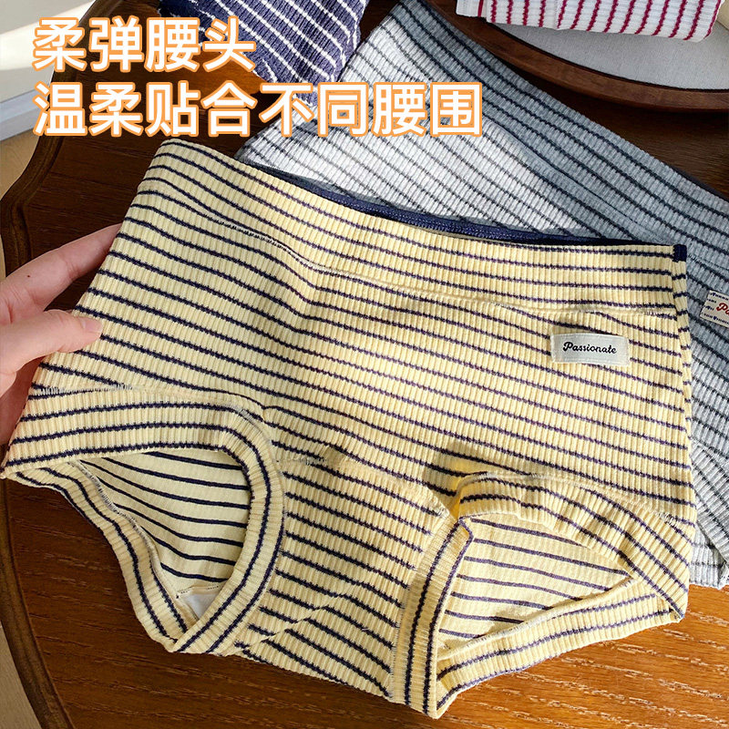 内裤女款2026新款条纹纯棉平角裤10A抗菌裆少女全棉大码胖MM短裤