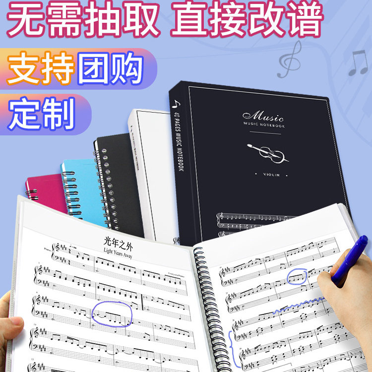 金得利谱夹子乐谱夹可修改钢琴谱夹册黑色谱夹a4a3文件夹活页曲谱夹阅谱歌谱本不反光学生吉他鼓琴音乐谱夹册