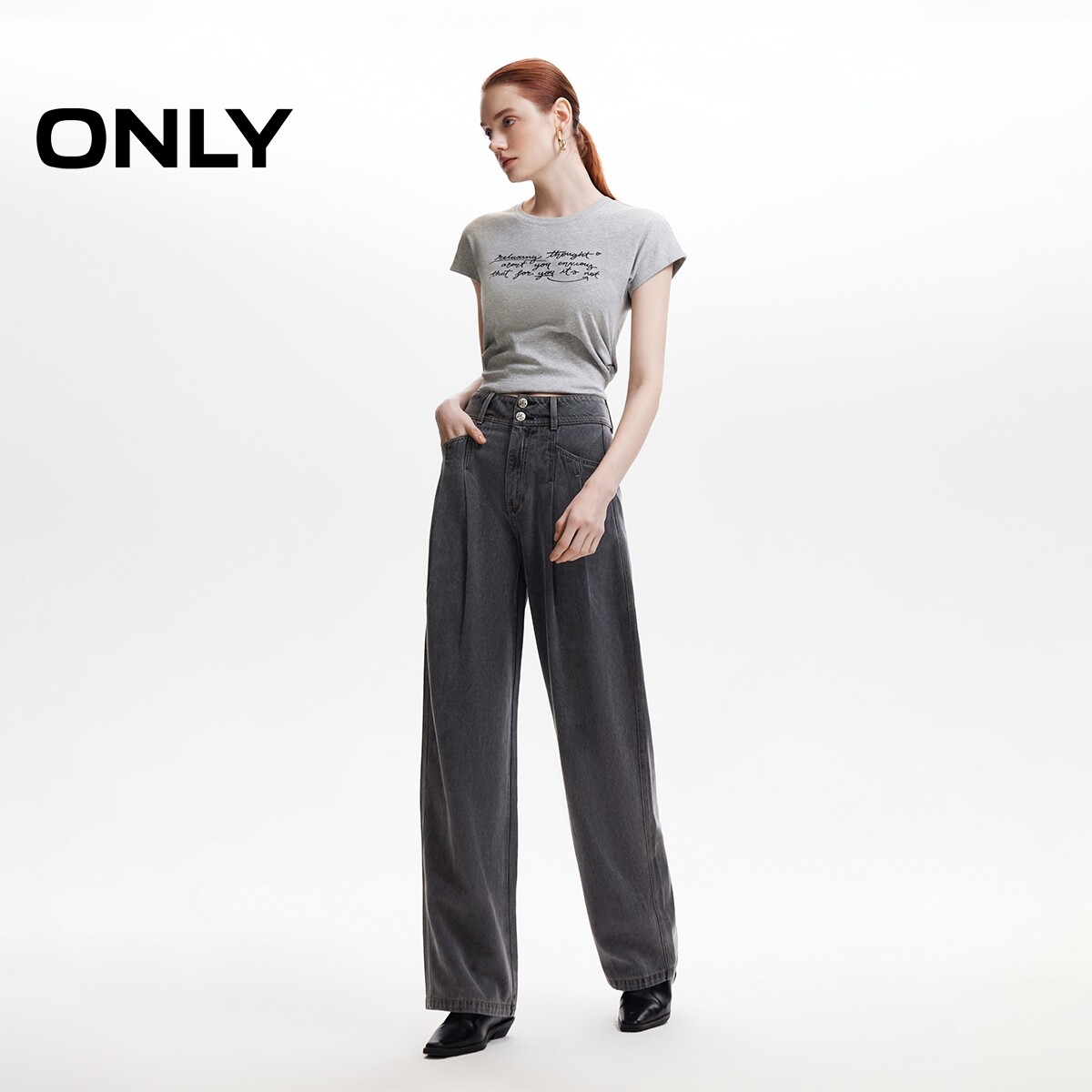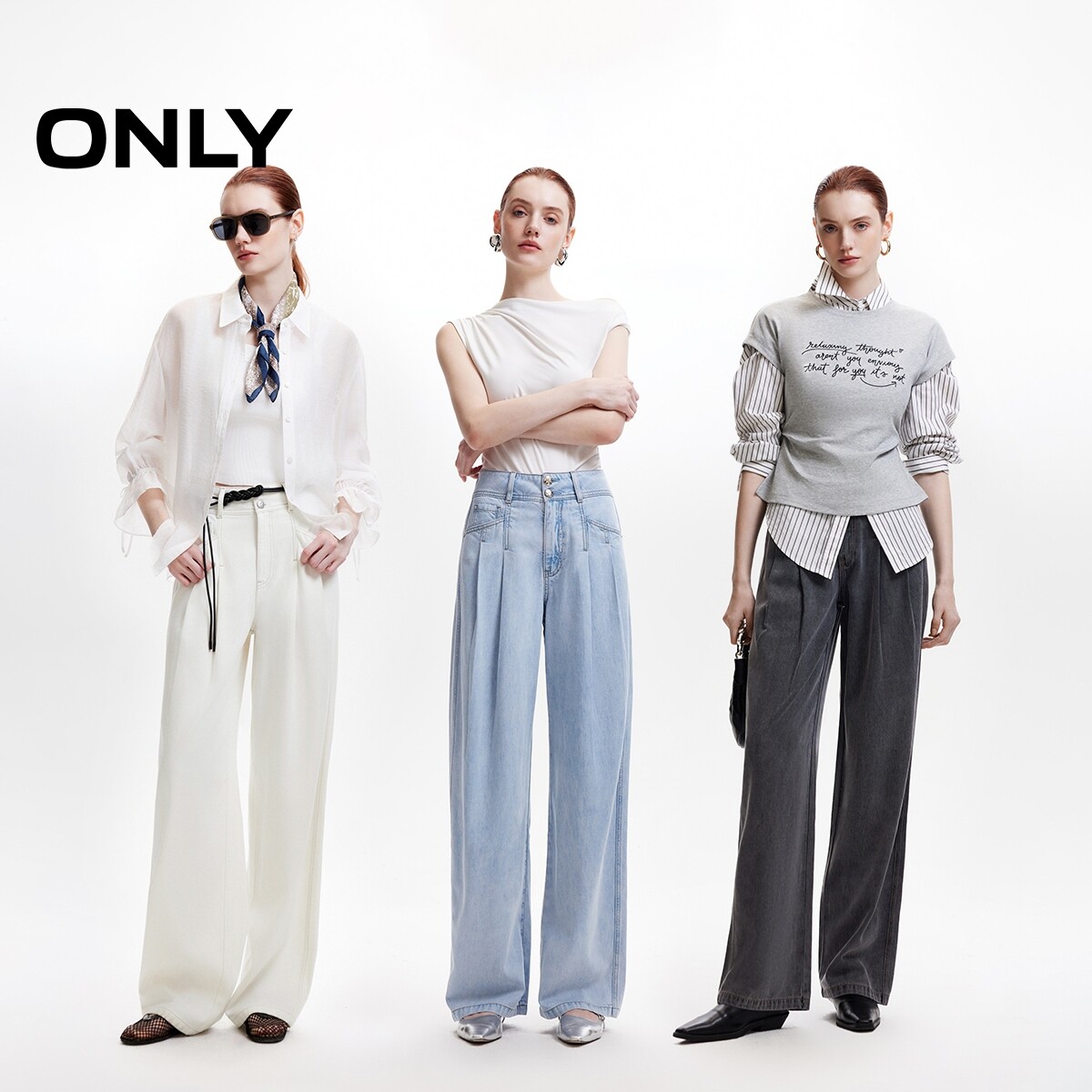 【果冻裤】ONLY2026春季新款含莱赛尔高腰宽松柔软垂坠阔腿牛仔裤