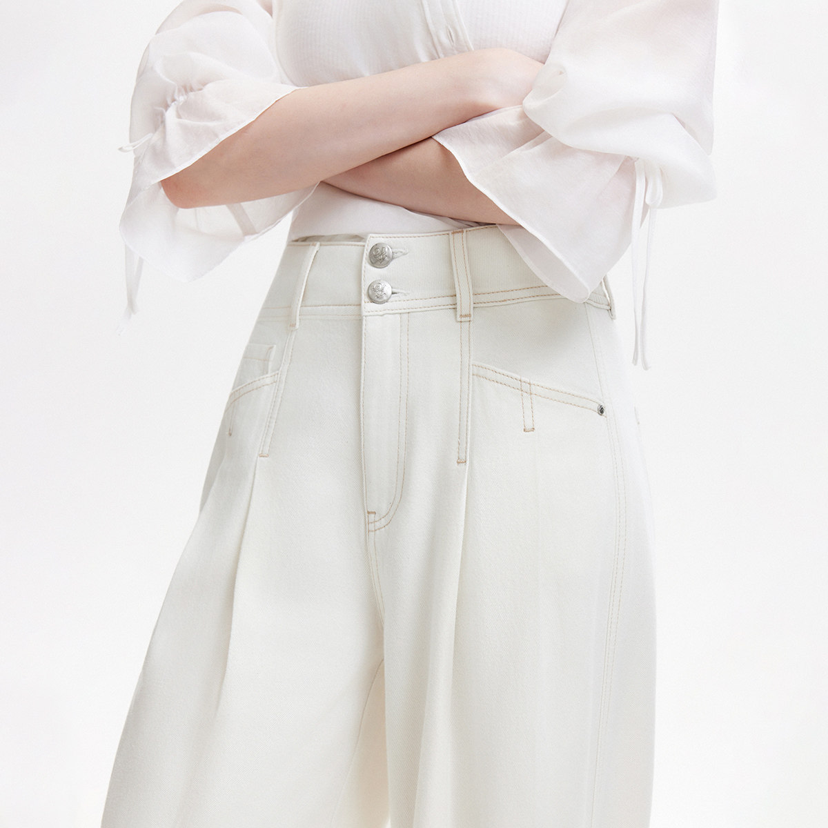 森柔牛仔|森马阔腿牛仔裤女2025秋冬白色牛仔裤简约女士高腰裤子