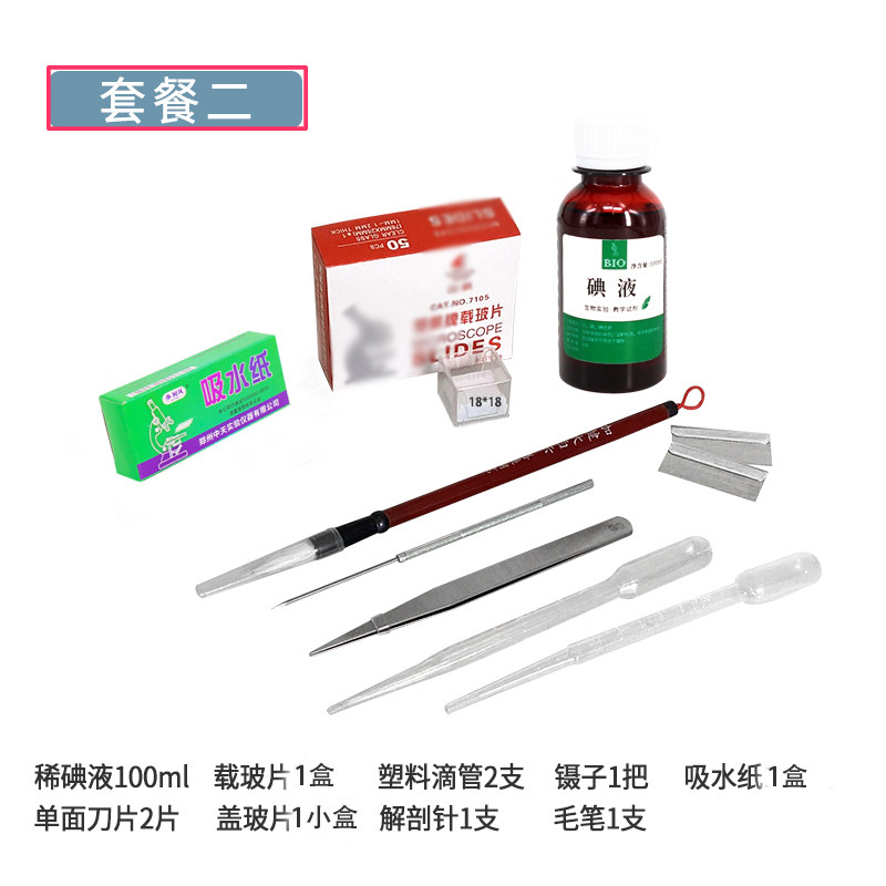 生物临时装片生物实验器材制作工具稀碘液染色用吸水纸载玻片教具