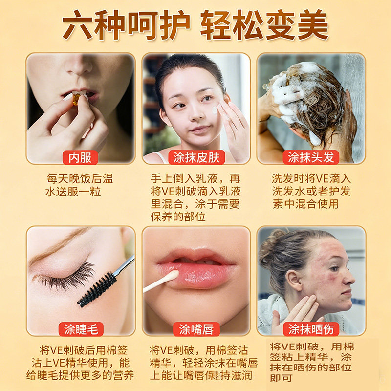 维生素e天然软胶囊油官方旗舰店正品美白淡斑去黄vc维e外涂擦脸用