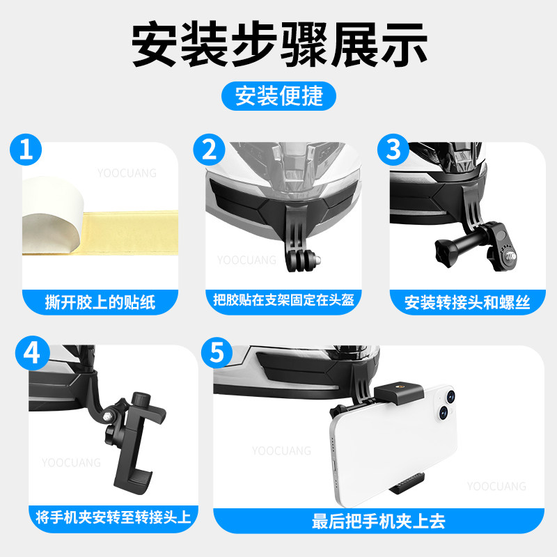 适合影石insta360Acepro头盔下巴第一人称骑行拍摄支架手机大疆Action6/5/4/3运动相机摩托车自行车机车支架