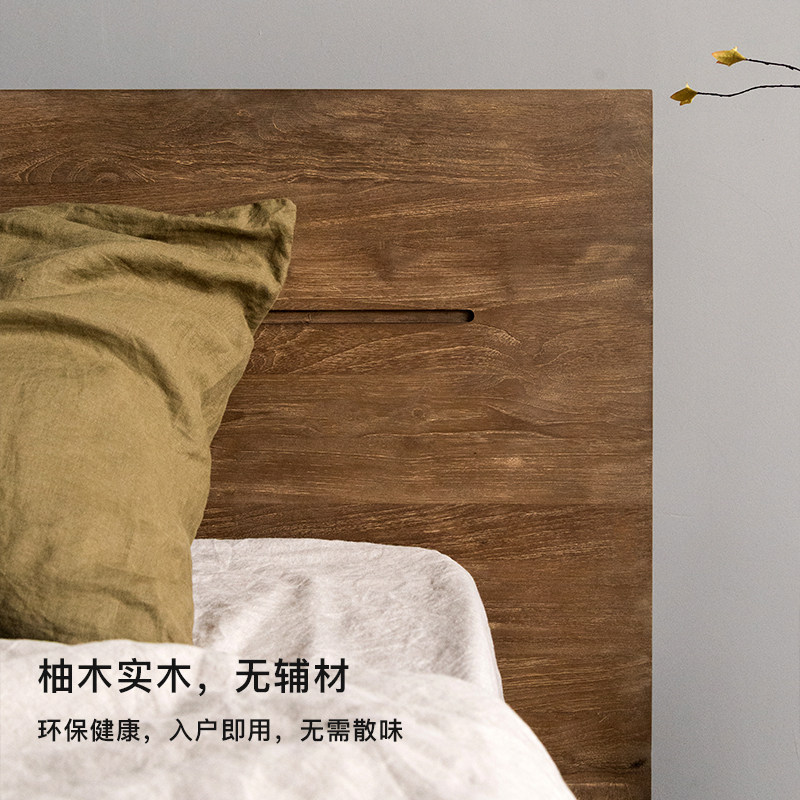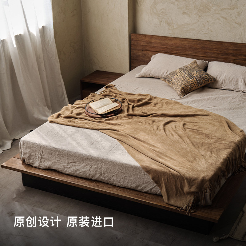 实木床现代简约胡桃木主卧1.5米双人床1.8米主卧轻奢婚房双人床