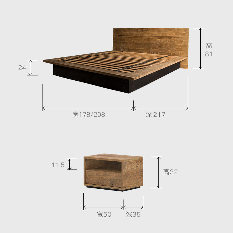 Mountain Living进口柚木家具纯实木床主卧大床架1米8复古中古风